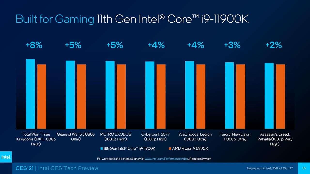 Ten model jest zresztą szczególny, bo to jego wykorzystano do porównań wydajności. Wedle slajdów zalicza od 8 do 14% wzrost wydajności względem poprzednika z 10. generacji, czyli i9-10900K, a przy porównaniu z Ryzenem 9 5900X, może pochwalić się od 2 do 8% wyższą wydajnością. Pozwala też na wyciągnięcie wyższej wydajności z dysków.