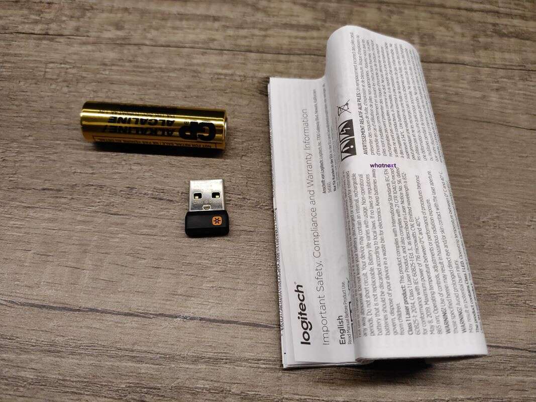 Ergo M575 dociera do nas w pudełku z recyklingu, wewnątrz którego zamiast folii ochronnej, znajdziemy kolejne kartonowe osłonki myszki razem z instrukcją obsługi, zainstalowaną już baterią AA oraz odbiornikiem USB Unifying. Innymi słowy, prosto i bez udziwnień.