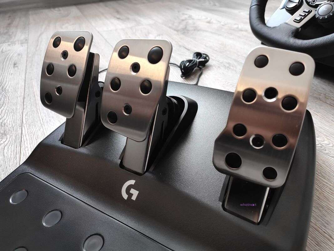 Co ważne, każdy z pedałów odzwierciedla rolę w rzeczywistym samochodzie i tak pedał gazu działa najlżej, a hamulca najciężej, ale wszystkie oferują precyzyjne i płynne przejścia w myśl siły nacisku. Na spodzie oprócz miejsca na śrubki do stelażów i podkładek antypoślizgowych, znajdziemy opatentowany system blokowania pedałów na dywanie, który sprowadza się do po prostu do uwalnianych plastikowych kolców.