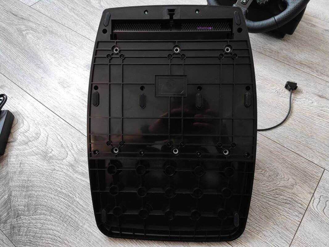 Cała zabawa z montażem jest dosyć prosta i sprowadza się jedynie do wpięcia zasilania i pedałów do kierownicy (ta posiada również wejścia na opcjonalną skrzynię biegów), a następnie wrzucenia platformy z pedałami pod biurko i przymocowania kierownicy do blatu. Odpowiadają za to plastikowe „imadełka”, regulowane za pomocą gałek po bokach kierownicy, które pozwolą na montaż do blatów o grubości do 5 cm.
