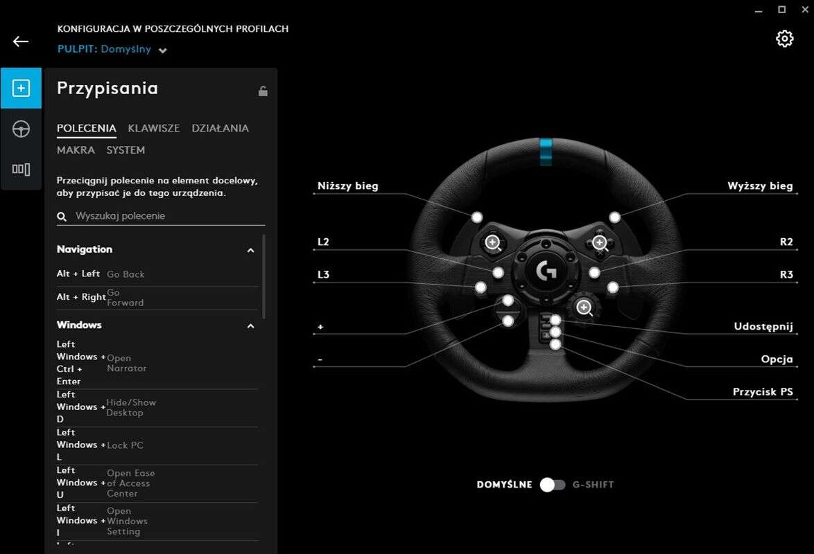 Główną częścią G923 jest oczywiście kierownica, z której możemy korzystać bez opisanego wyżej zestawu pedałów. W jej konstrukcji warto wyróżnić dobry system zarządzania przewodami, opcję podpięcia nie tylko pedałów, ale też dostępnej osobno gałki zmiany biegów. Chociaż wspominałem już o tym, że system mocowania do biurka wypada najgorzej na tle całej konstrukcji, to po mocnym przykręceniu możecie być pewni, że kierownica nie spadnie Wam z biurka podczas nawet najbardziej zajadłych rozgrywek.