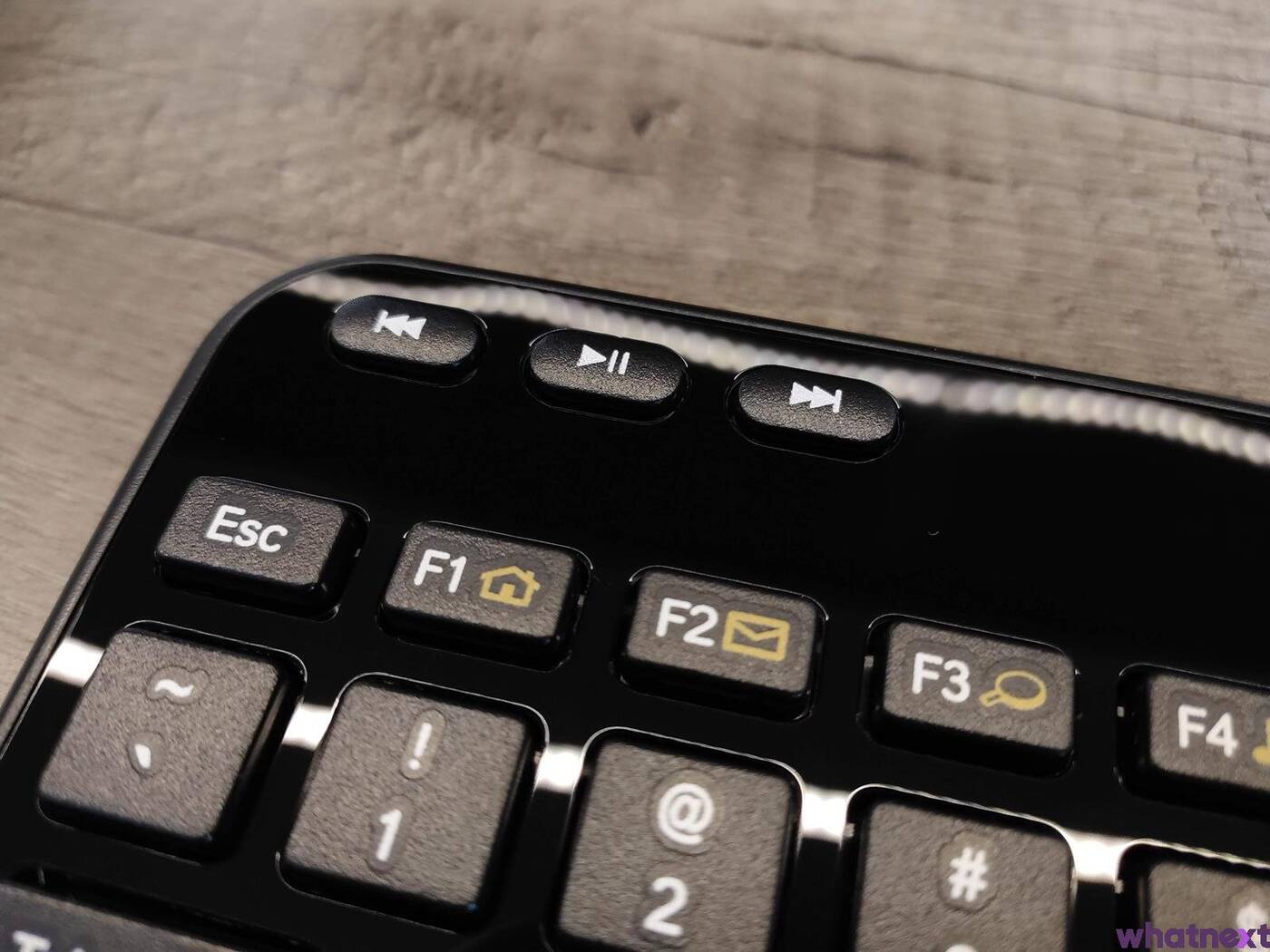 Pomijając jednak całą otoczkę ceny i wykonania, na membranowych klawiszach K360 jak najbardziej da się pisać, choć oczywiście jest to feeling na poziomie klawiatur z tych bardziej tanich, niż droższych laptopów. Jednak tradycyjny układ płaskich klawiszy z naklejoną czcionką, dodatkowe multimedialne przyciski na górnej krawędzi i prosty przełącznik on/off, to połączenie, na które trudno narzekać.