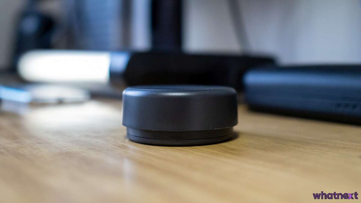 Nie wspomniałem Wam jeszcze o ostatnim elemencie zestawu, czyli pokrętle sterującym. Również jest bezprzewodowe i odpowiada za całe sterownie dźwiękiem.