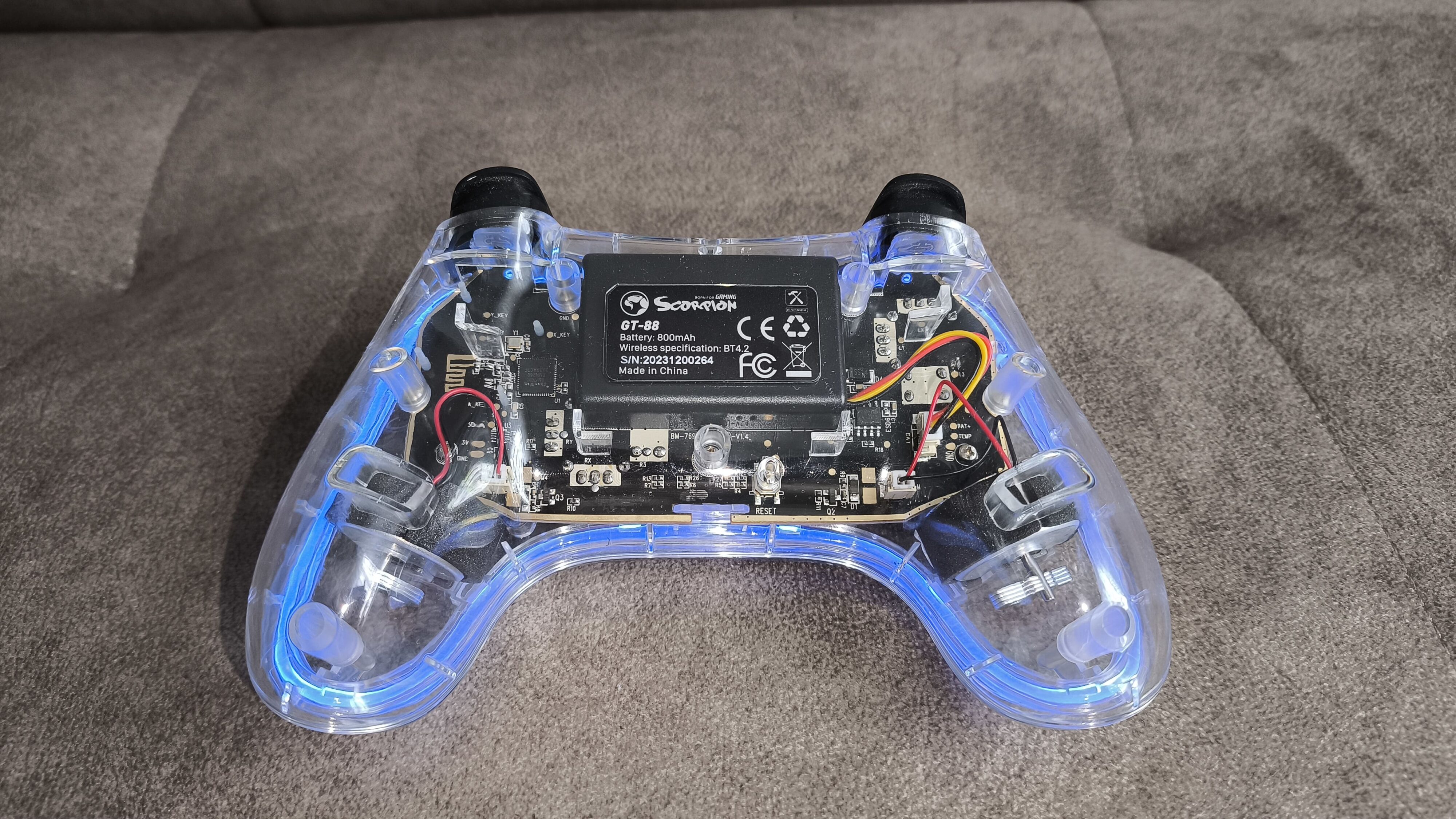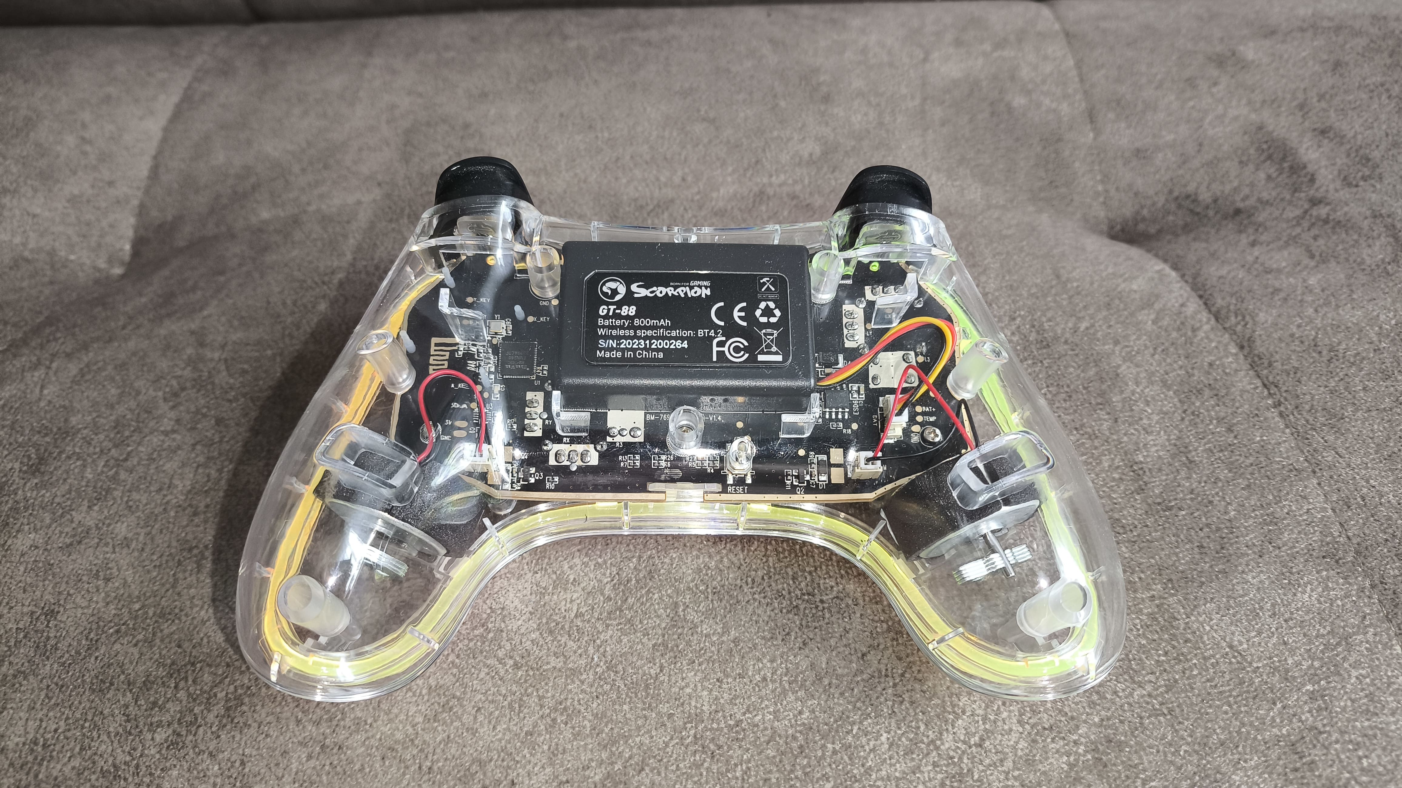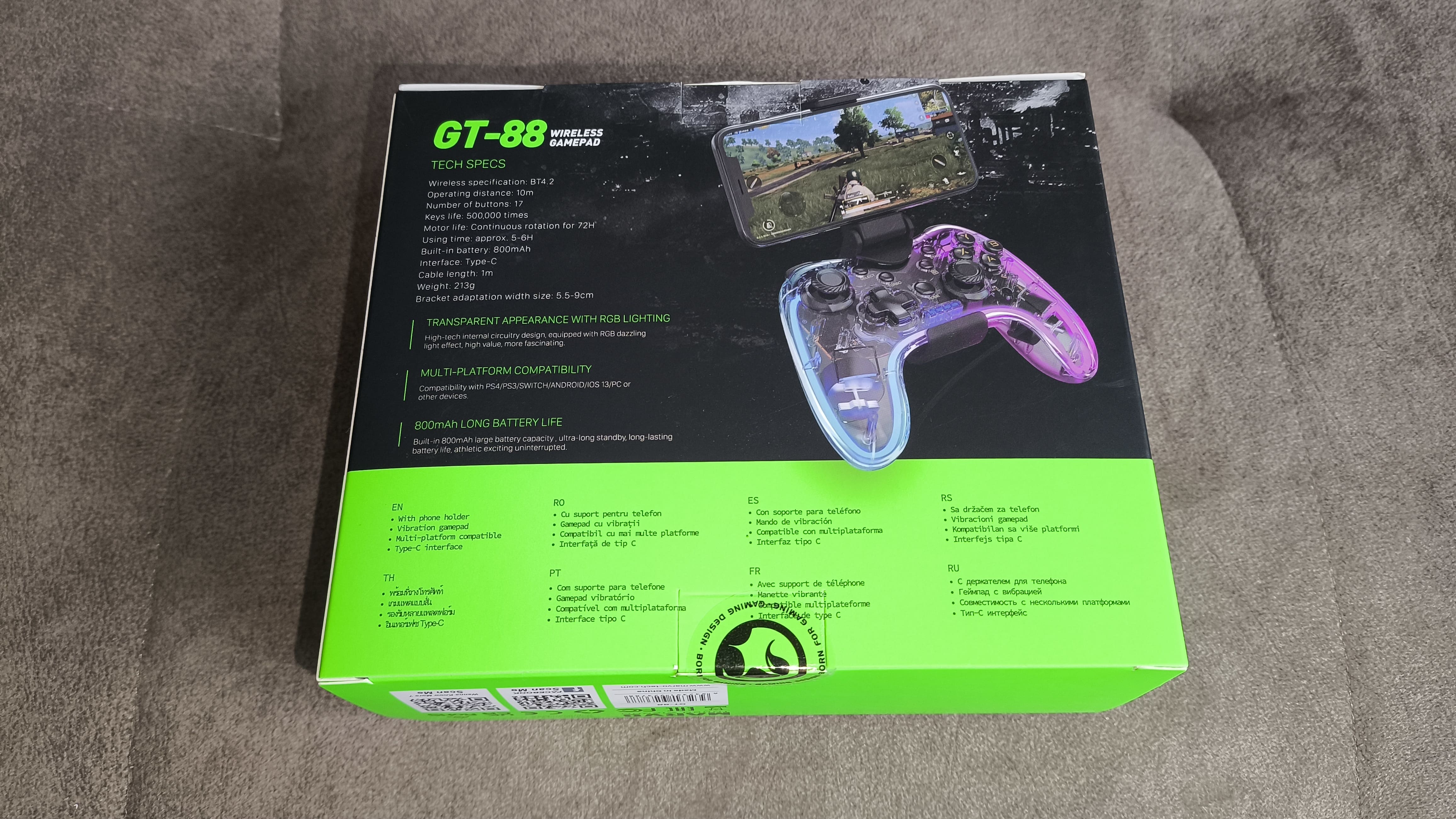 Marvo GT-88 to kontroler bezprzewodowy, który komunikuje się z urządzeniem za pomocą odbiornika USB. Nie korzysta z Bluetooth, co może być zarówno zaletą, jak i wadą – z jednej strony daje stabilne połączenie z minimalnym opóźnieniem, z drugiej wymaga dostępnego portu USB w urządzeniu, co w przypadku smartfona oznacza konieczność korzystania z przejściówki OTG.