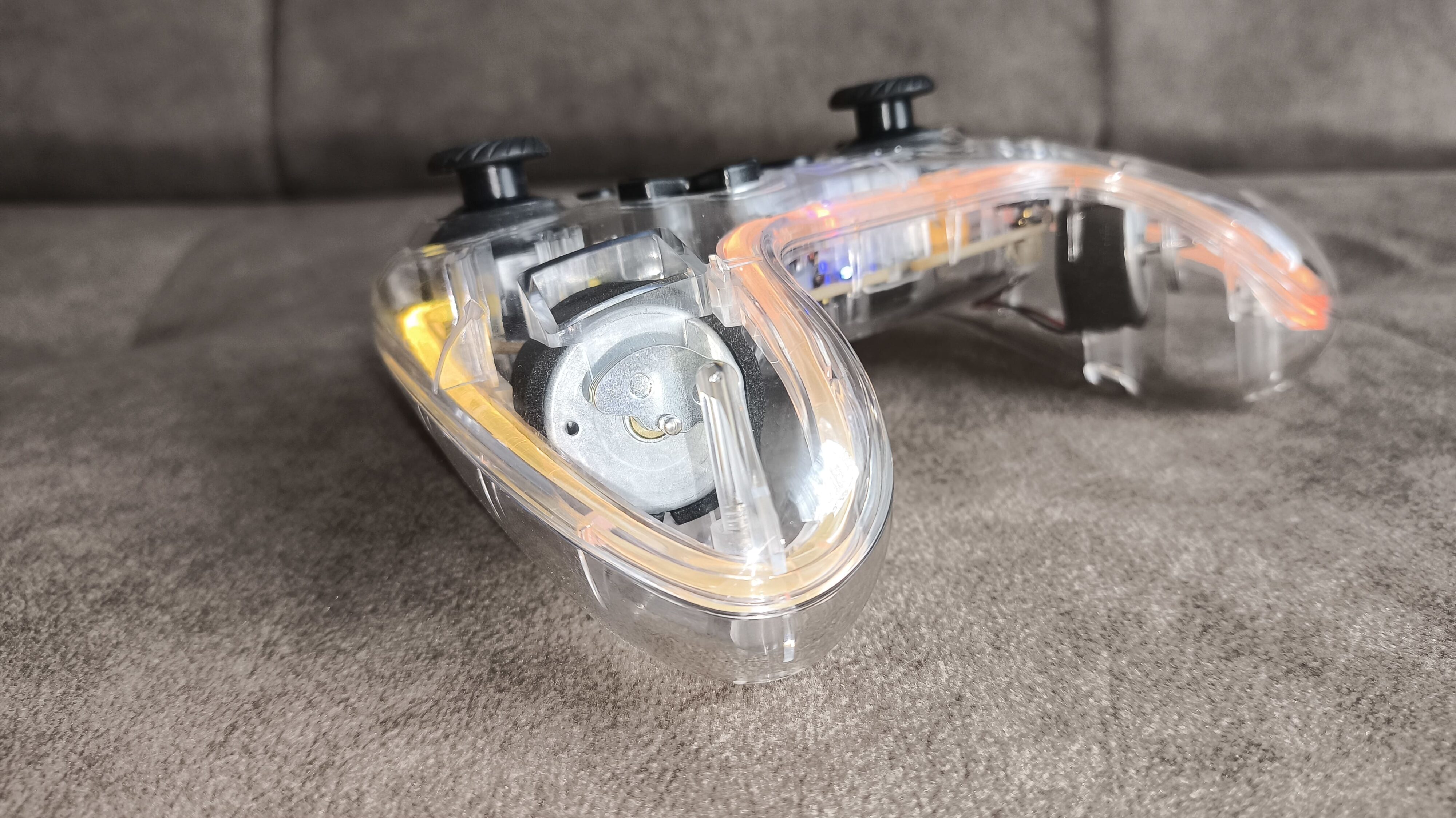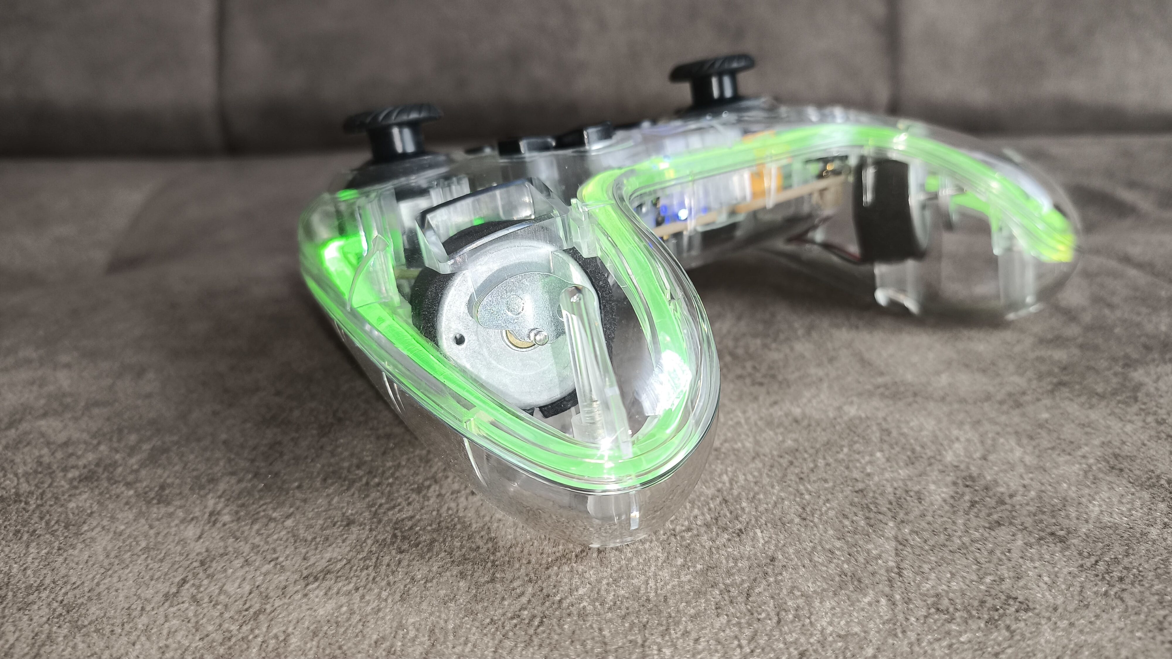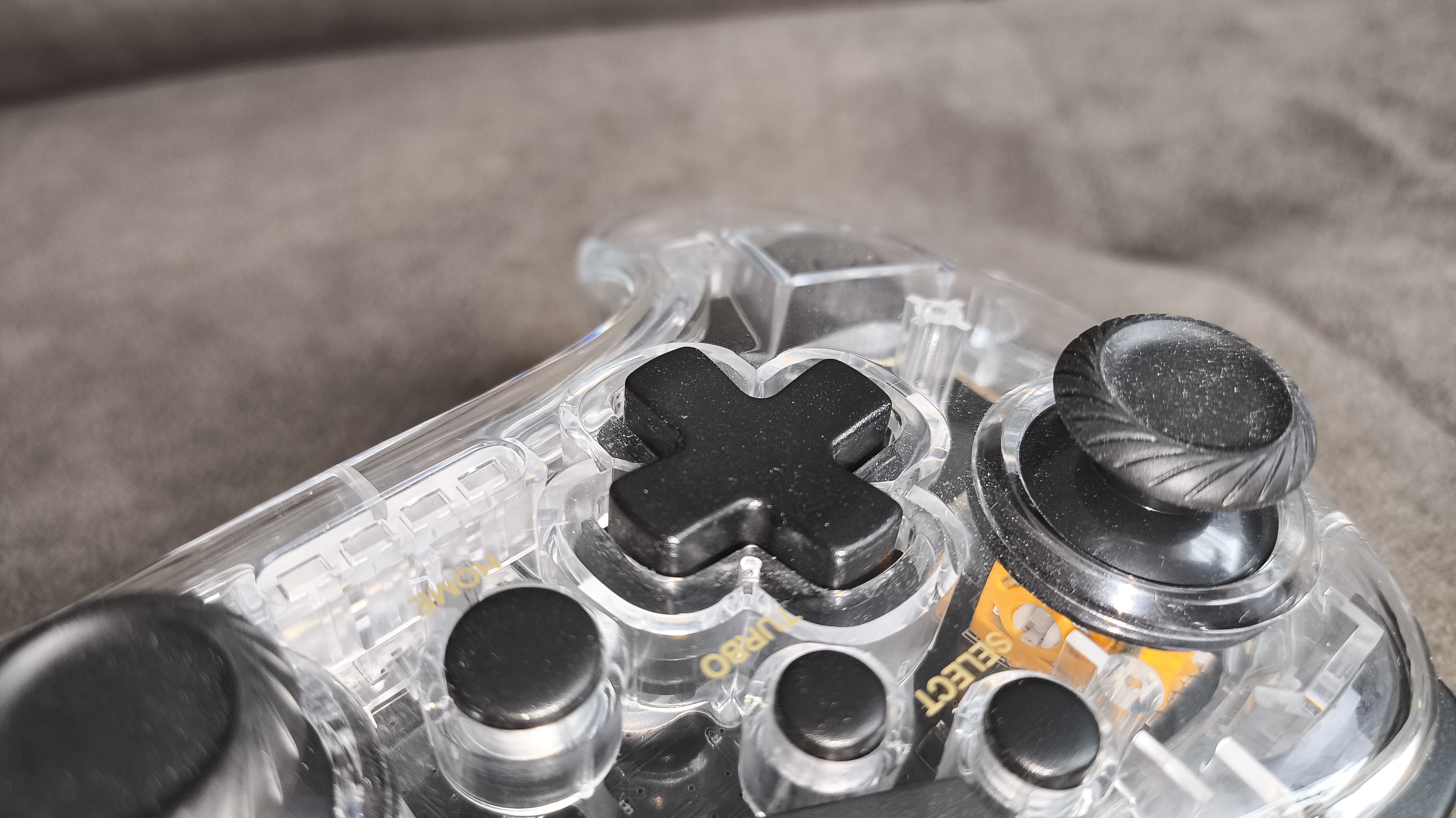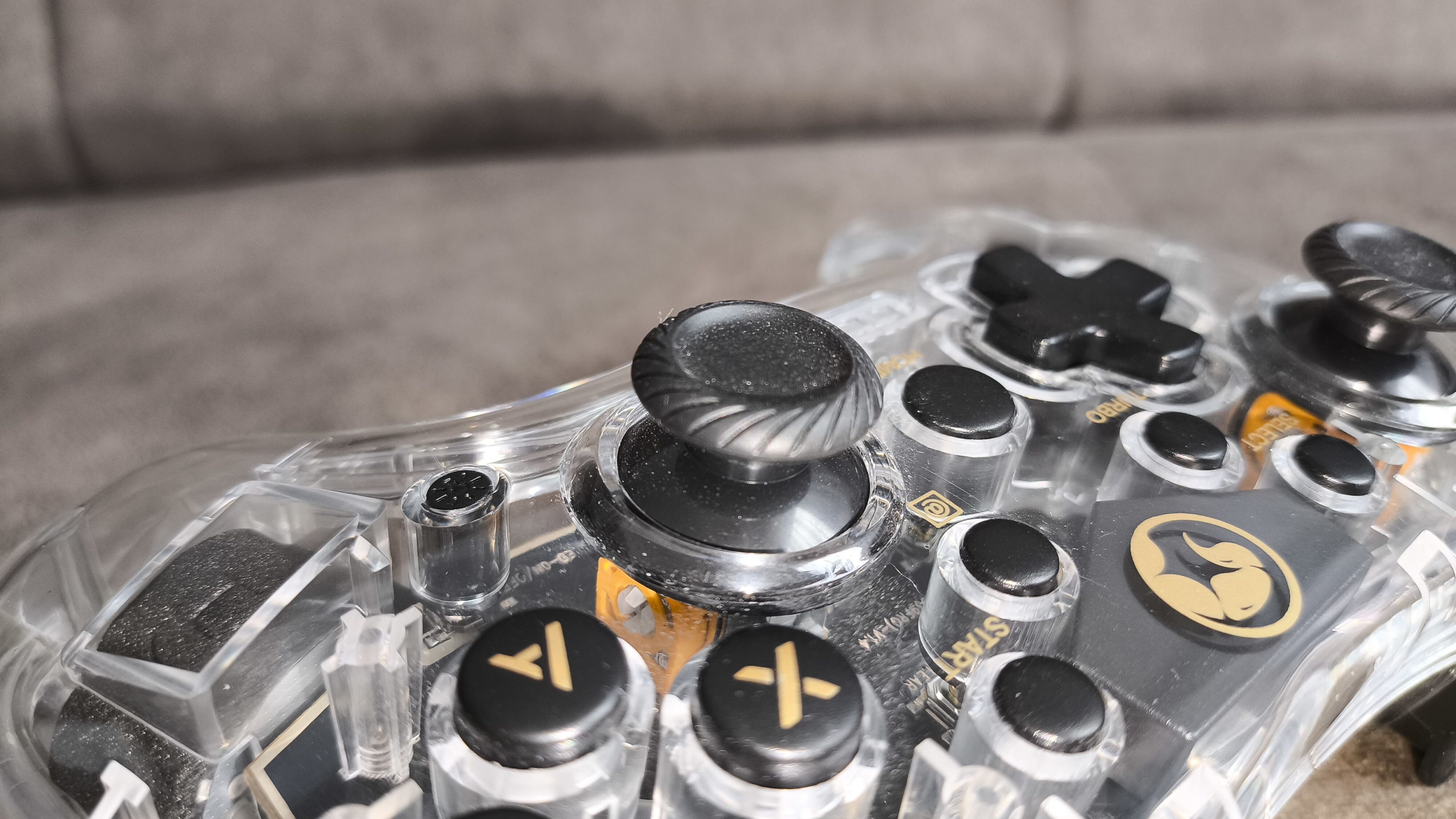 Przyciski działają poprawnie, mają dość wyraźny klik i nie sprawiają wrażenia nadmiernie luźnych czy „gumowych”. Gałki analogowe pracują płynnie, choć mają nieco mniejszy opór niż w droższych konstrukcjach. Ich precyzja jest wystarczająca do grania w gry mobilne, szczególnie w emulatory, bijatyki czy proste gry 3D.