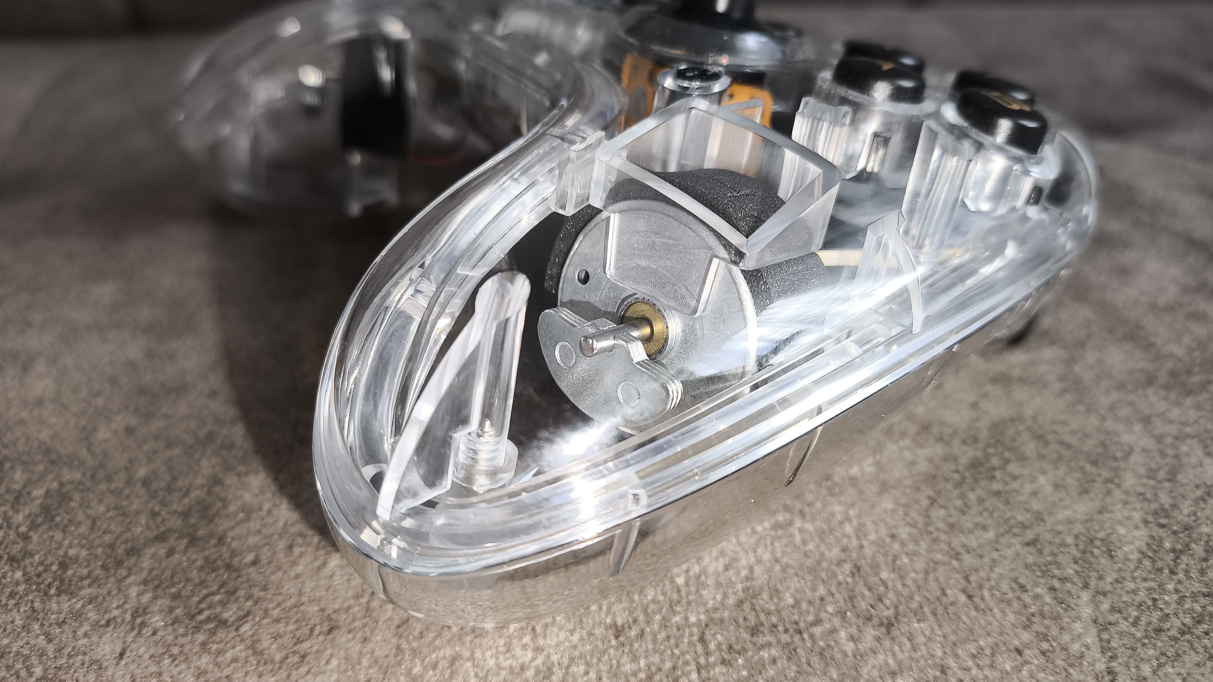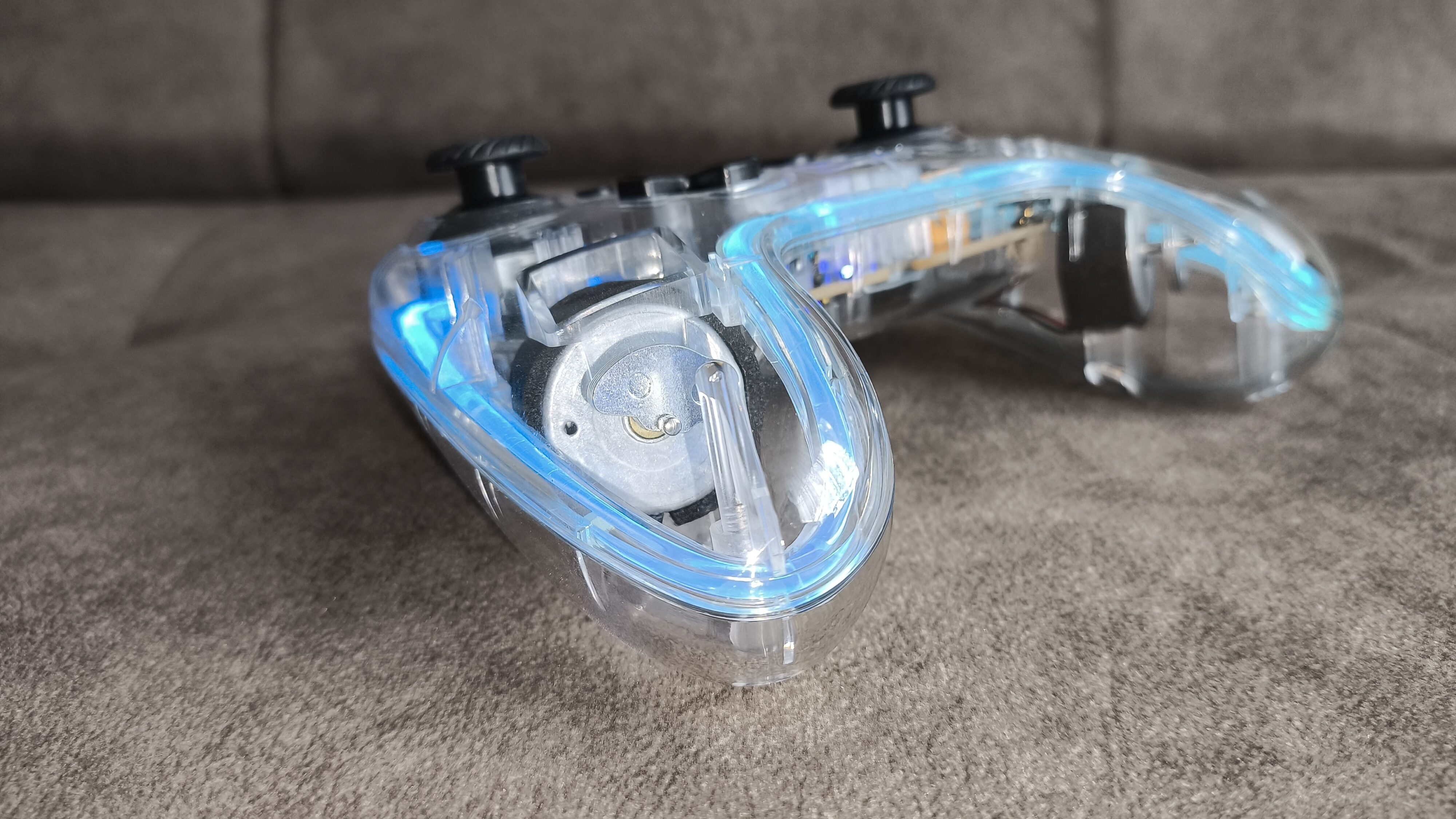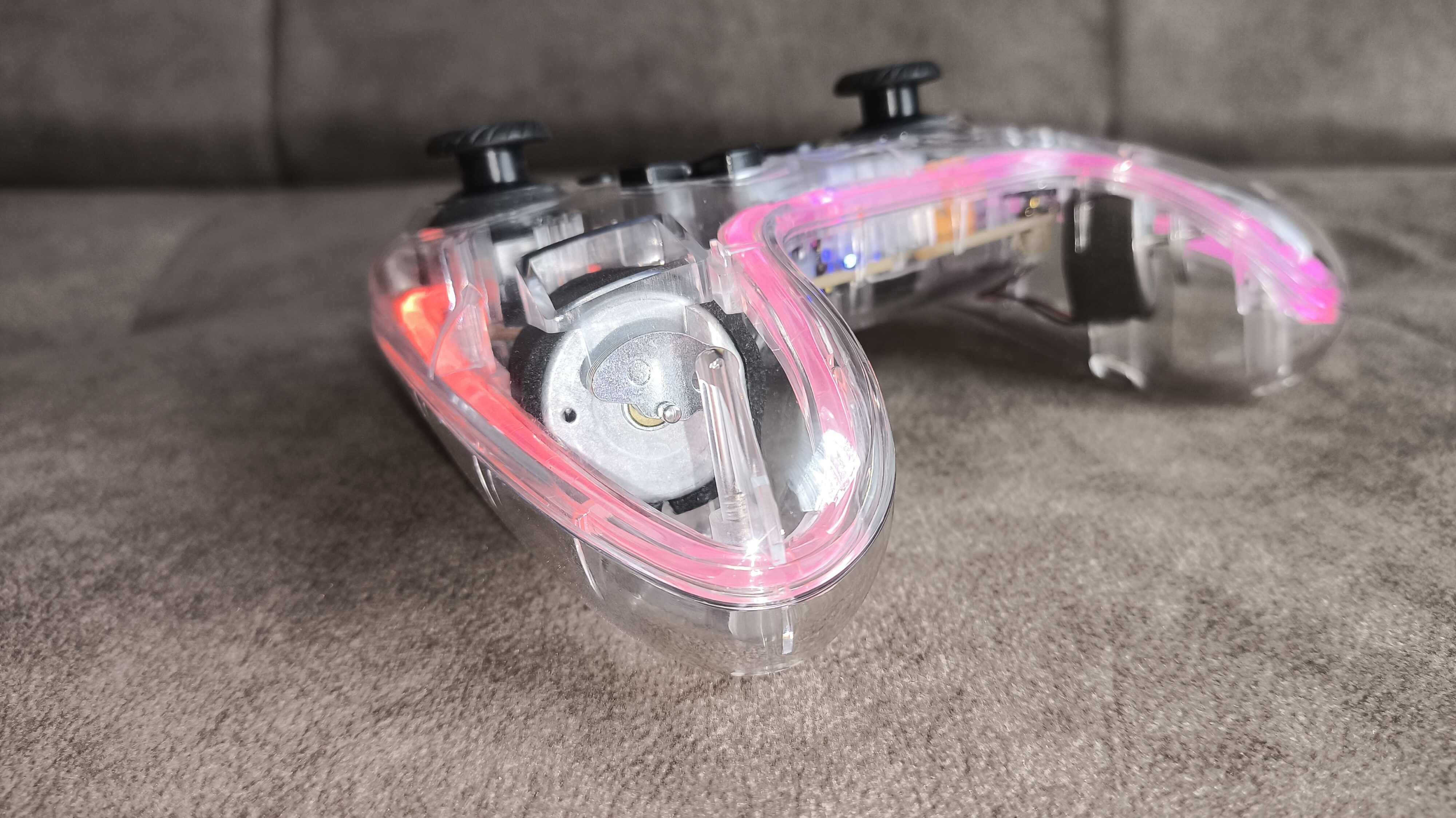 Przyciski działają poprawnie, mają dość wyraźny klik i nie sprawiają wrażenia nadmiernie luźnych czy „gumowych”. Gałki analogowe pracują płynnie, choć mają nieco mniejszy opór niż w droższych konstrukcjach. Ich precyzja jest wystarczająca do grania w gry mobilne, szczególnie w emulatory, bijatyki czy proste gry 3D.