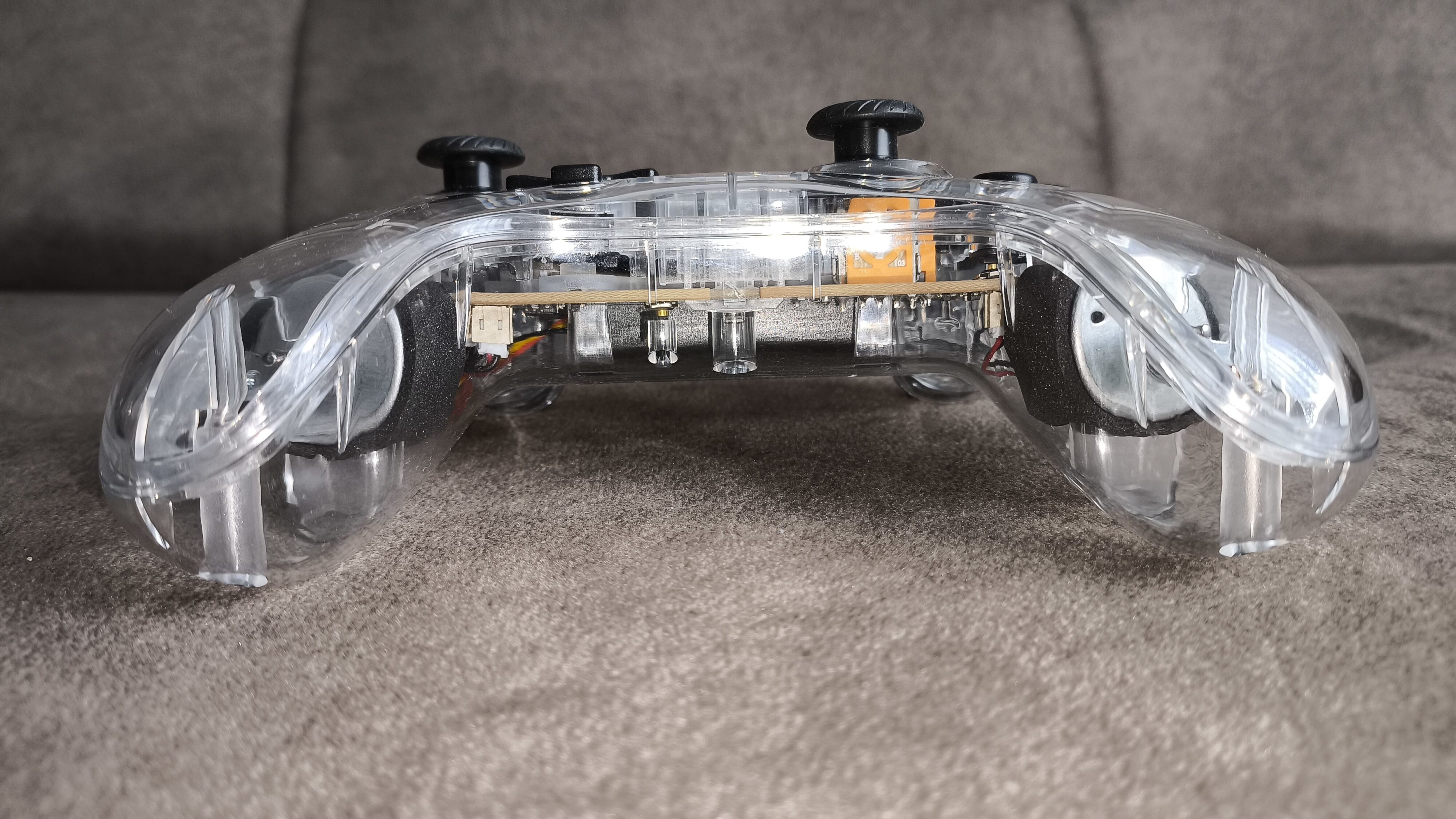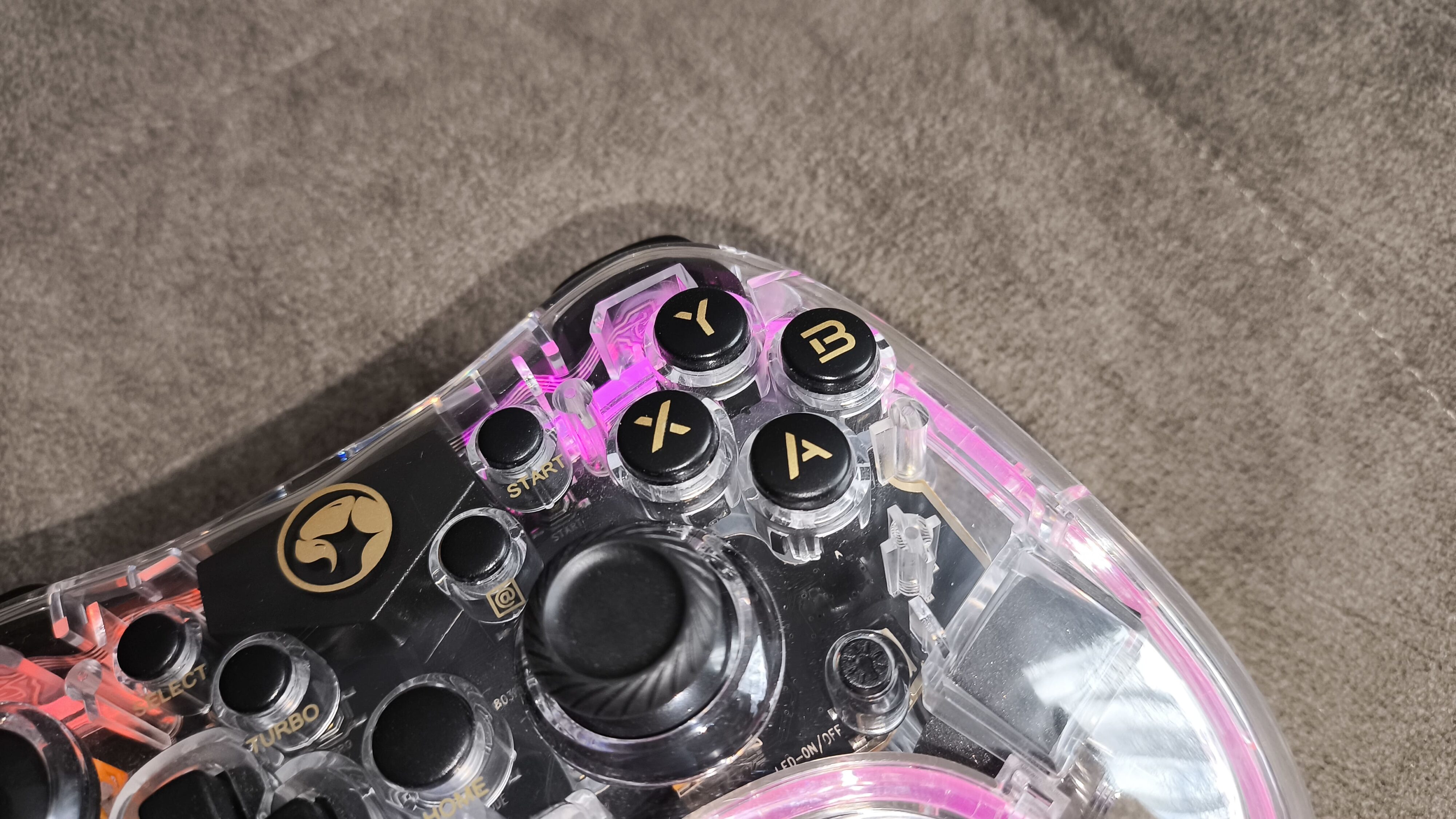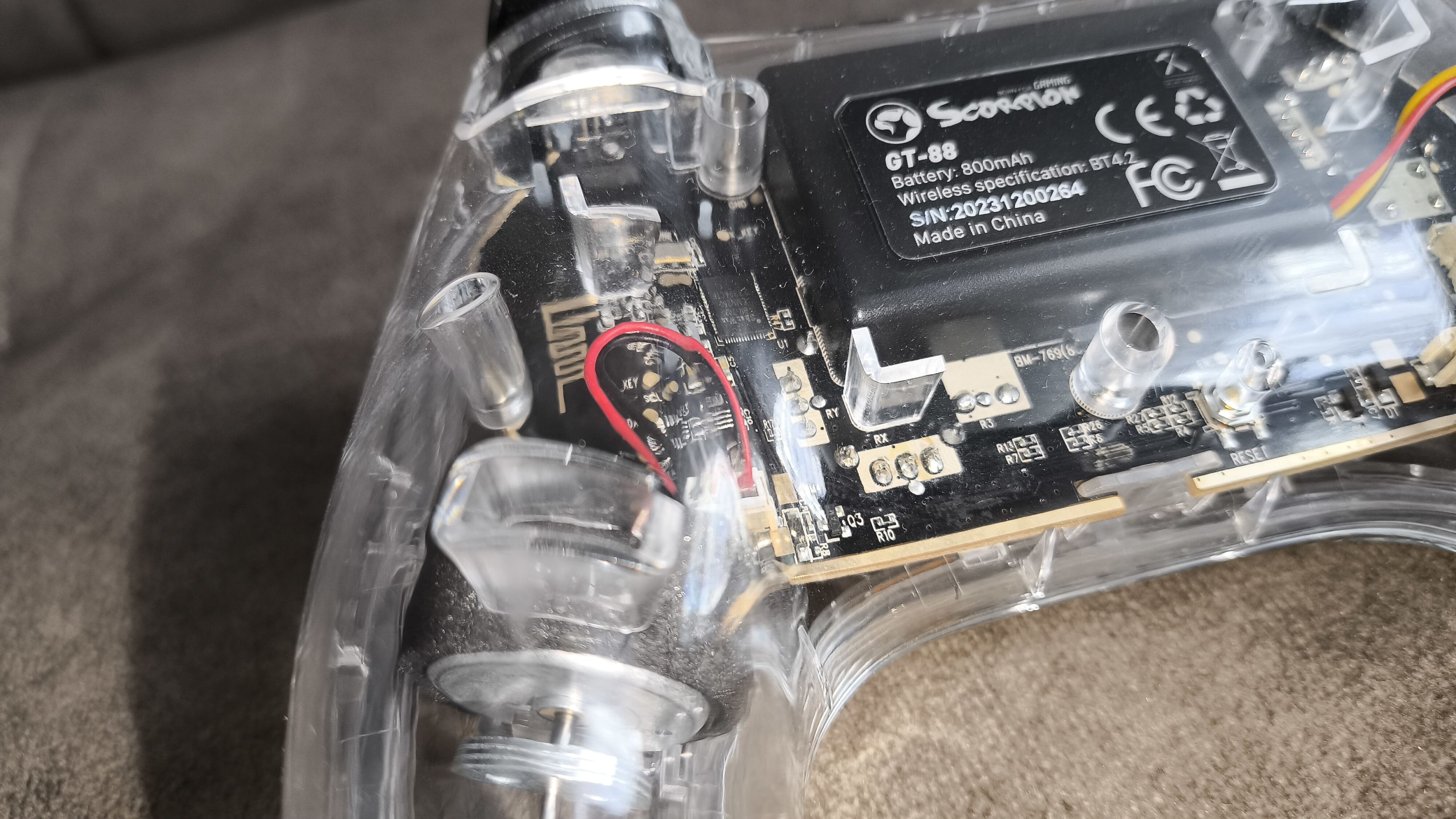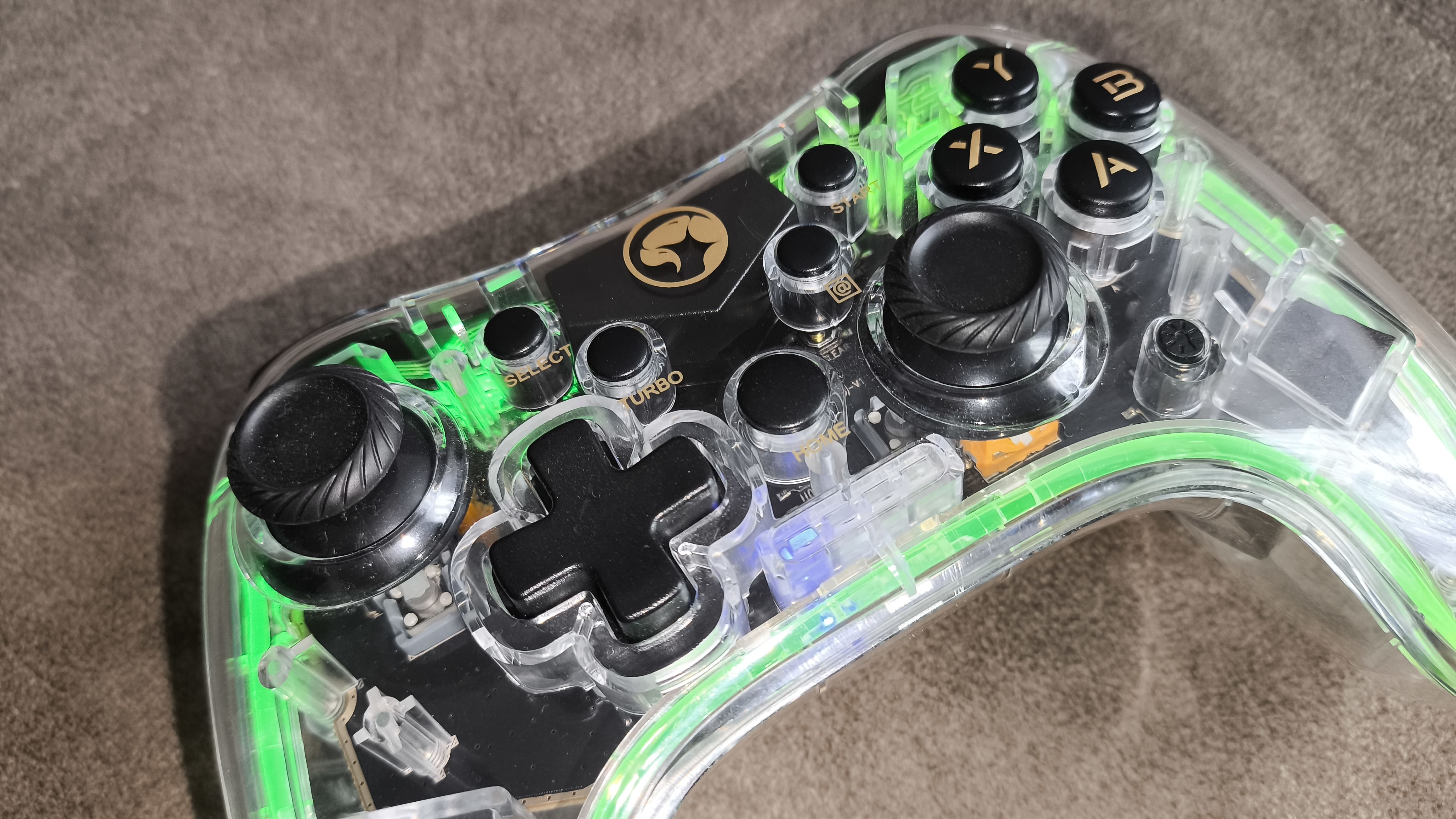Przyciski działają poprawnie, mają dość wyraźny klik i nie sprawiają wrażenia nadmiernie luźnych czy „gumowych”. Gałki analogowe pracują płynnie, choć mają nieco mniejszy opór niż w droższych konstrukcjach. Ich precyzja jest wystarczająca do grania w gry mobilne, szczególnie w emulatory, bijatyki czy proste gry 3D.