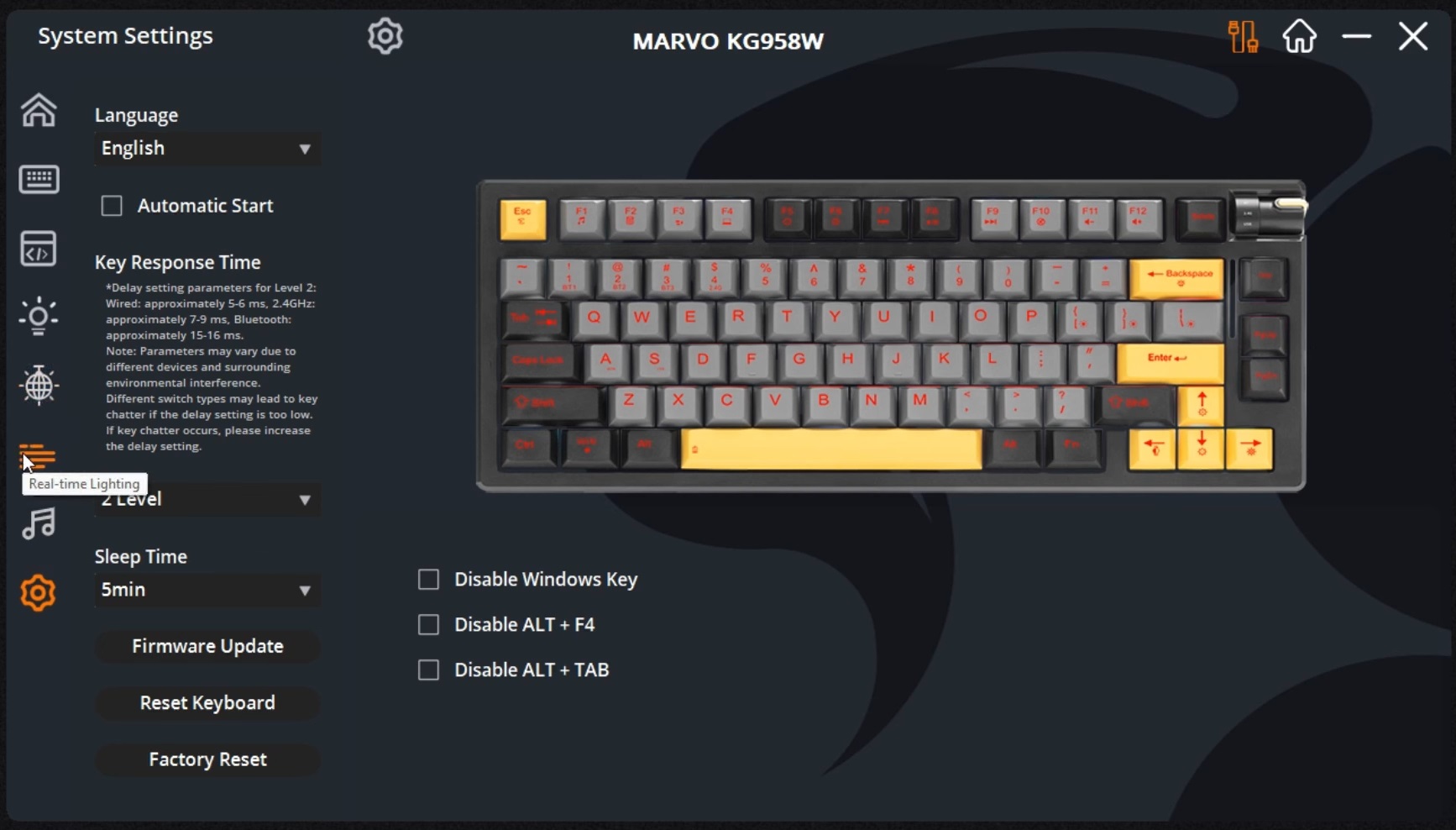 Marvo przygotowało dedykowany program do sterowania klawiaturą Meqa 80W. W tym softcie można zmieniać efekty RGB, przypisywać makra, a także modyfikować funkcje poszczególnych klawiszy i tworzyć własne profile.