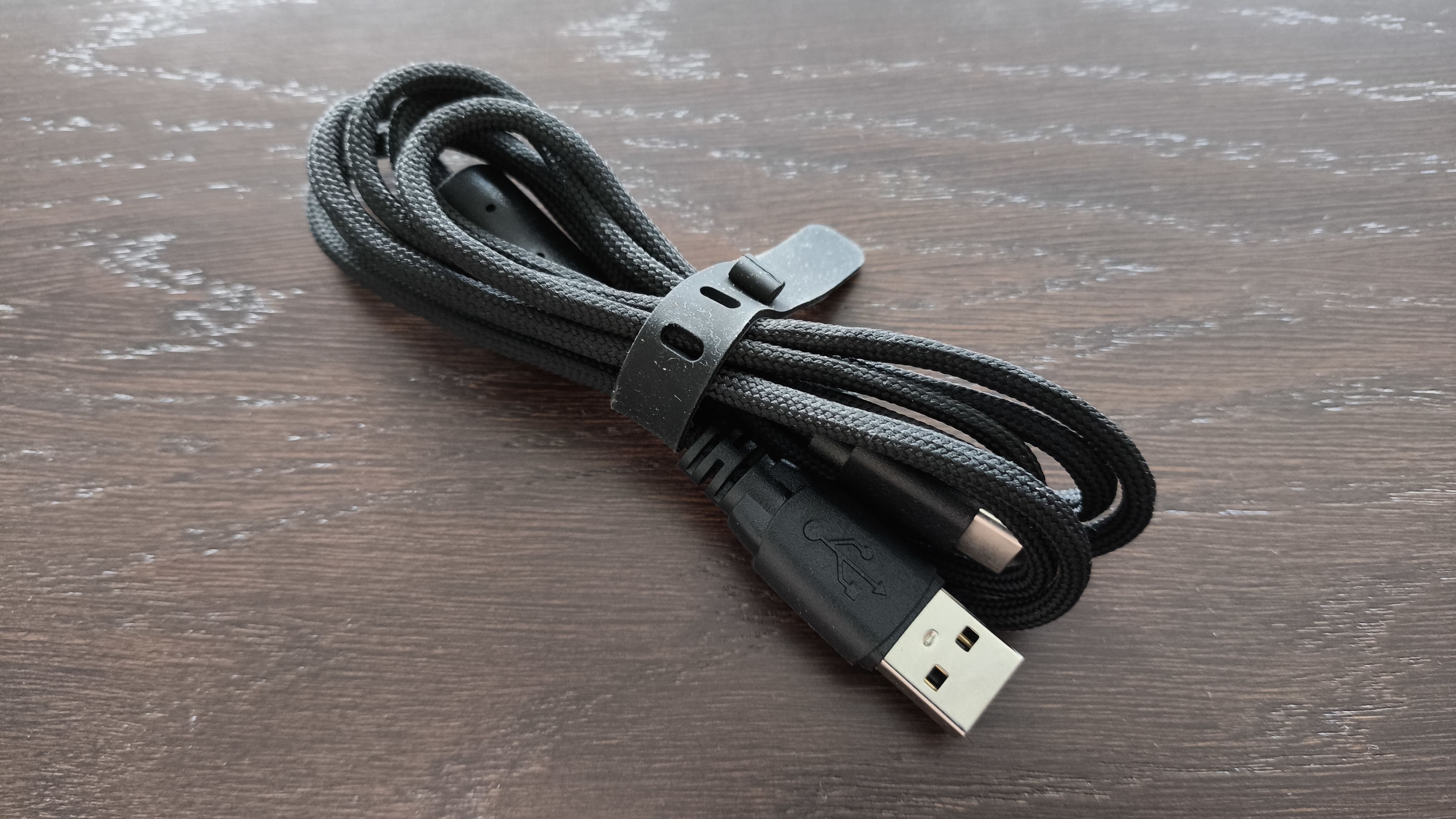 Na uwagę zasługuje odpinany przewód dołączony do zestawu. Choć nie jest to paracord, to wciąż prezentuje się lepiej niż niejeden kabel w myszkach z tej półki. Jest wystarczająco giętki, nie stawia nadmiernego oporu, a dzięki oplotowi zyskuje na trwałości. Nie jest to przewód, który trzeba natychmiast wymienić — można spokojnie na nim pracować i grać bez uczucia dyskomfortu.