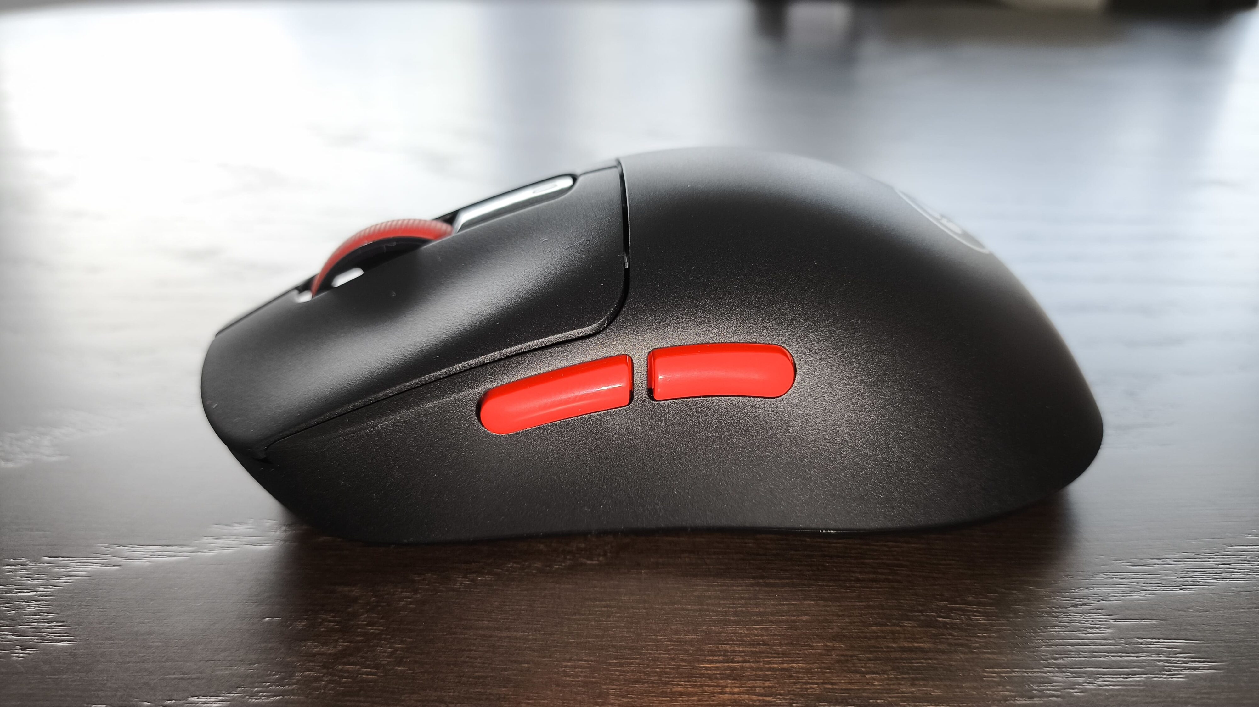 Skok bocznych przełączników jest nieco krótszy niż głównych, ale nadal dobrze wyczuwalny i z przyjemnym, mechanicznym oporem. Kliknięcie jest wyraźne, z nieco niższym profilem dźwiękowym niż w przypadku LPM/PPM. Nie odnotowałem też żadnych sytuacji, w których przyciski zareagowałyby z opóźnieniem lub zadziałały przypadkowo – precyzja stoi na zadowalającym poziomie.