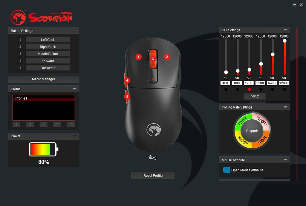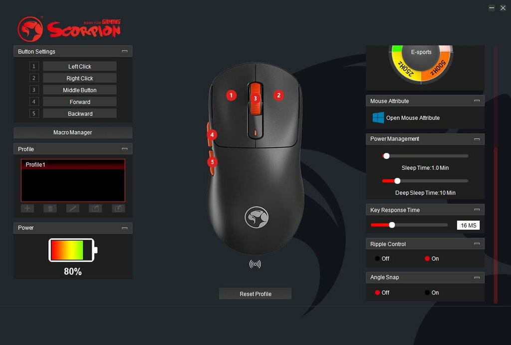 Oprogramowanie dostępne dla Marvo Niro 60W jest proste, co można uznać za zarówno zaletę, jak i wadę, w zależności od oczekiwań użytkownika. Jak można się było spodziewać po myszy budżetowej, interfejs nie jest przesadnie zaawansowany, ale zawiera wszystkie kluczowe funkcje, które powinny wystarczyć do komfortowego użytkowania. Możemy tutaj dostosować ustawienia sensora, zmienić reakcję przycisków oraz tworzyć własne makra – to wszystko w jednym, łatwym do nawigowania panelu.