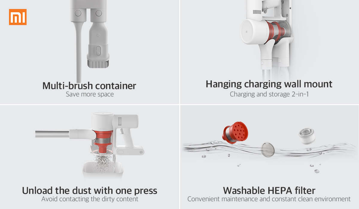 Odkurzacz wyposażono w szybki silnik bezszczotkowy o prędkości 100 000 obr./min zapewniający dużą moc ssania 1200AW, która może łatwo zebrać roztocza. Trzy tryby pracy pozwolą na dostosowanie funkcji do własnych potrzeb. G9 wyposażono także w stojak do ładowania ściennego. Elementy filtracyjne zaś można umyć wodą, co zapobiegnie wtórnemu zanieczyszczeniu powietrza.
