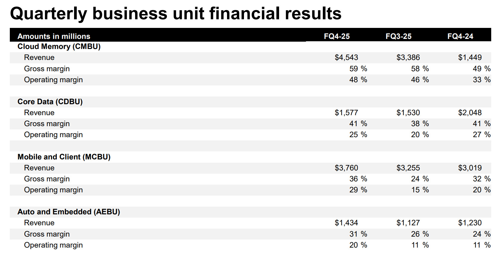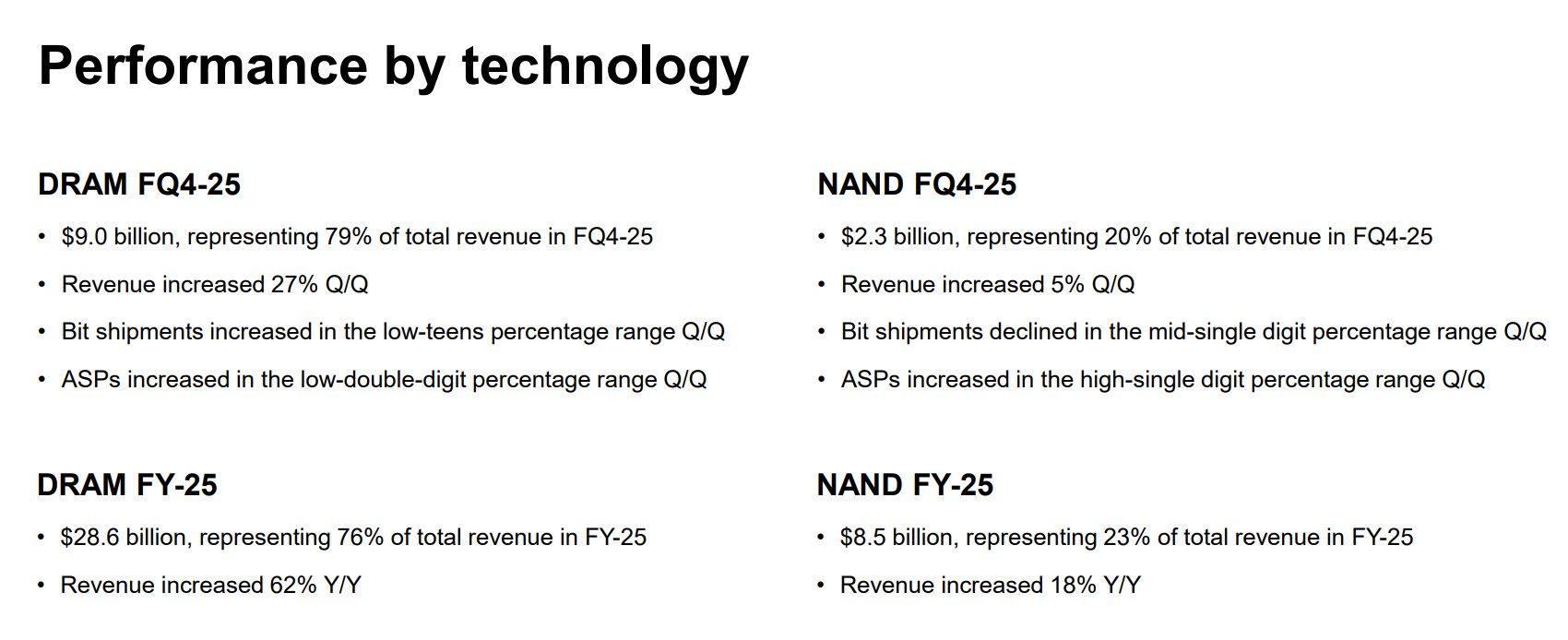 W samym IV kwartale przychody Microna wyniosły 11,32 mld USD wobec 9,30 mld USD w poprzednim kwartale i 7,75 mld USD rok wcześniej. Zysk netto w ujęciu GAAP osiągnął 3,20 mld USD (2,83 USD na akcję), a w ujęciu non-GAAP 3,47 mld USD (3,03 USD na akcję). Przepływy operacyjne sięgnęły 5,73 mld USD wobec 4,61 mld USD w poprzednim kwartale.