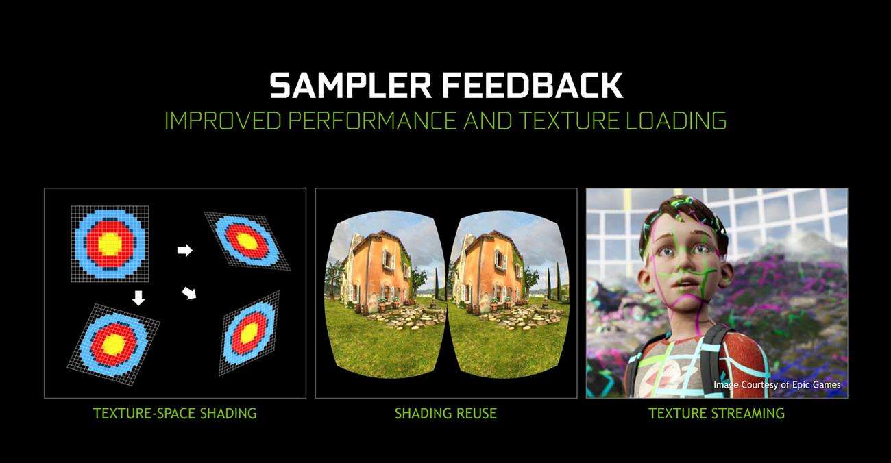 Kolejne rzeczy to Mesh Shader i Sampler Feedback. Ta pierwsza rzecz umożliwia tworzenie znacznie bardziej szczegółowych i szybko zmieniających się scen. Sample Feedback obiecuje lepszą jakość obrazu i krótsze czasy ładowania, dzięki dostarczaniu bardziej szczegółowych informacji dla programistów.
