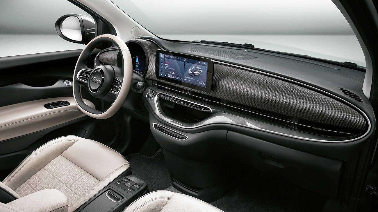 Fiat 500e jest ponadto ogólnie większy, bo poszerzył się o 2,3 cale wszerz i wzdłuż, ciągnąc za sobą rozstaw osi o 2 centymetry. Wewnątrz są również stosowne innowacje. Deska rozdzielcza rozszerzyła się w poziomie i przyjęła na swój pokład 10,25-calowy ekran dotykowy, a także szereg przycisków przypominających klawisze fortepianu. 7-calowy wyświetlacz zajmuje się wszystkimi wskaźnikami, a płaska podłoga oferuje pasażerom nieco więcej przestrzeni wewnętrznej.