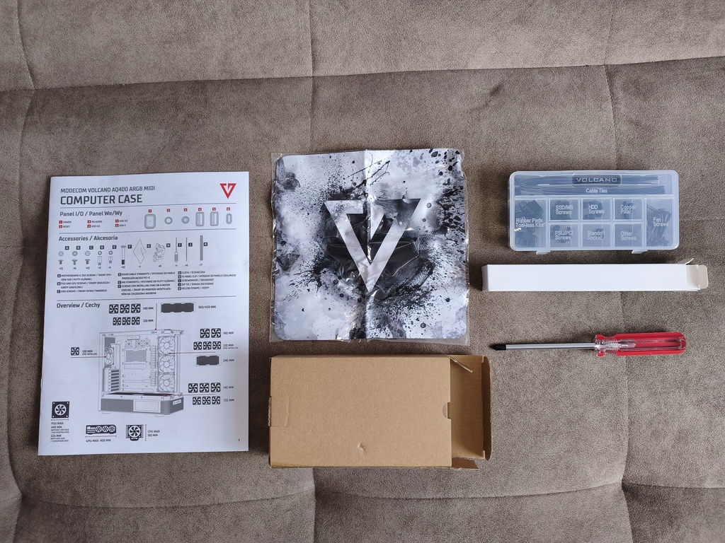 Oprócz kartonowego pudełka i zaślepki slotów PCI, producent dołącza do zestawu jeszcze praktyczny plastikowy box zawierający:
