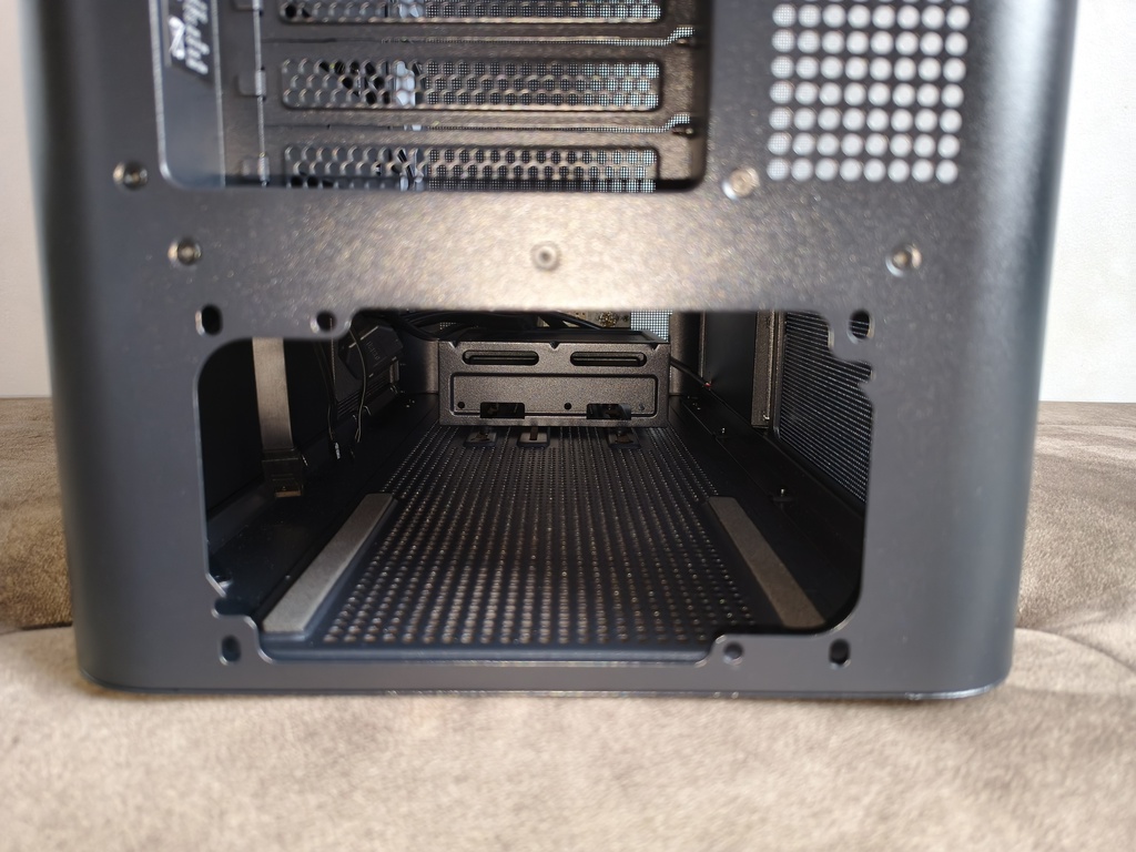 Na minus z kolei należy jednak zaliczyć brak regulowanej podpórki dla kart graficznych, która okazuje się szczególnie przydatna w przypadku dłuższych i cięższych konstrukcji. Konstrukcja nie przewiduje też natywnego montażu pionowego dla karty graficznej.