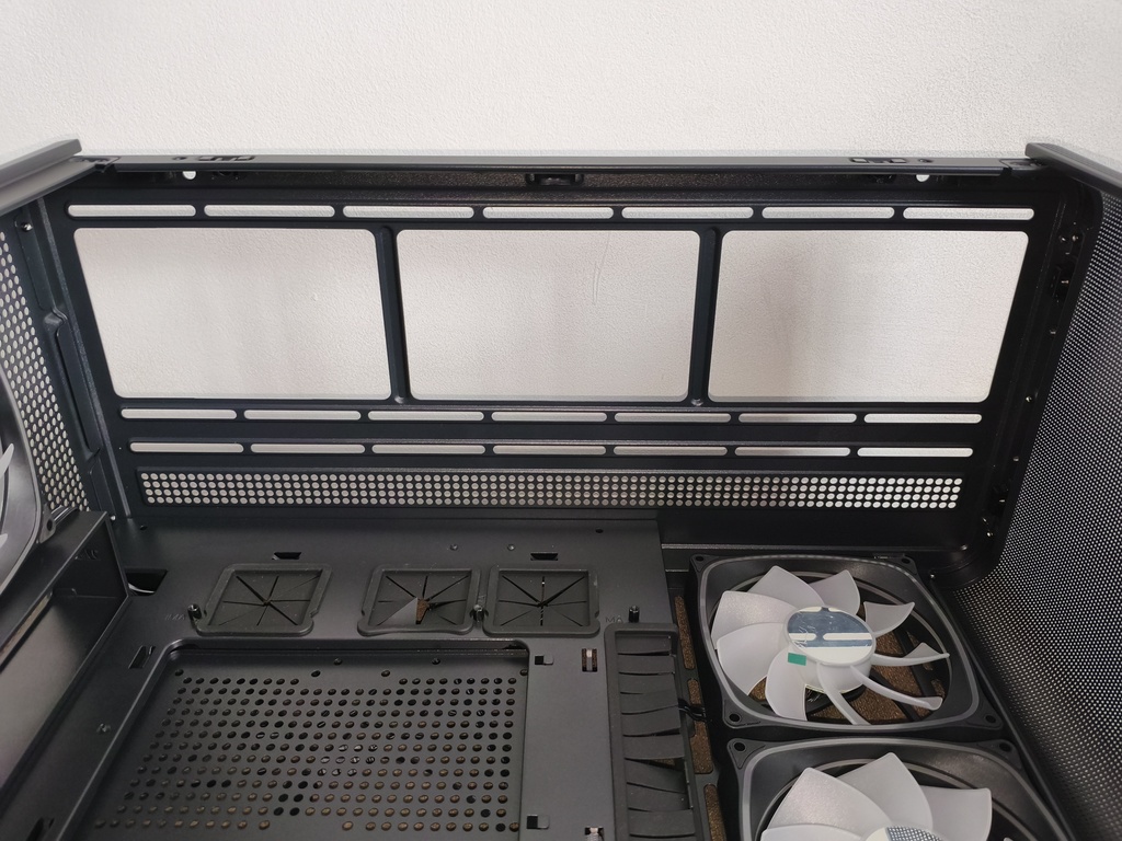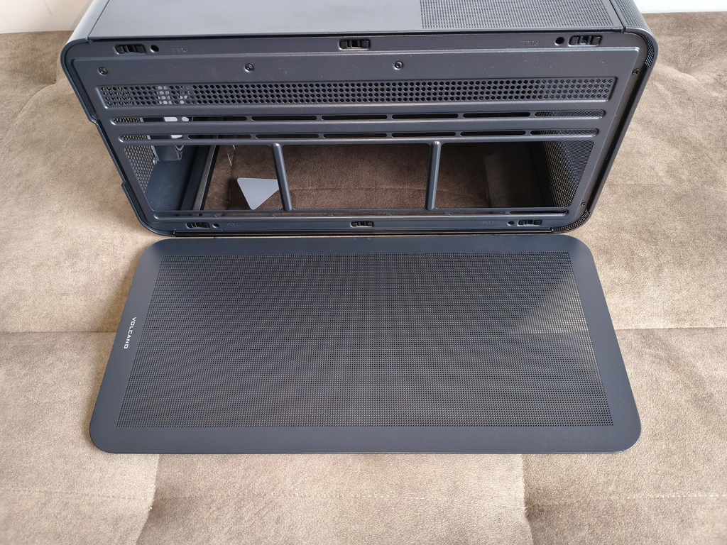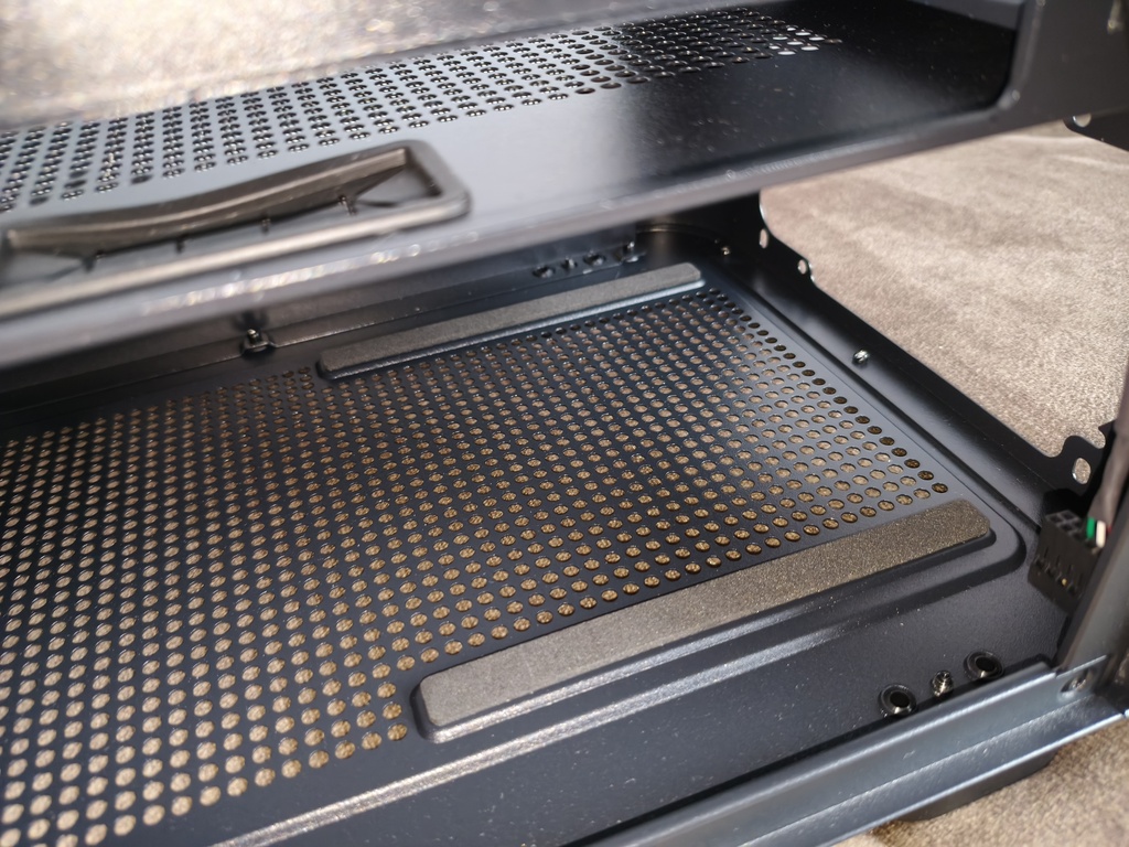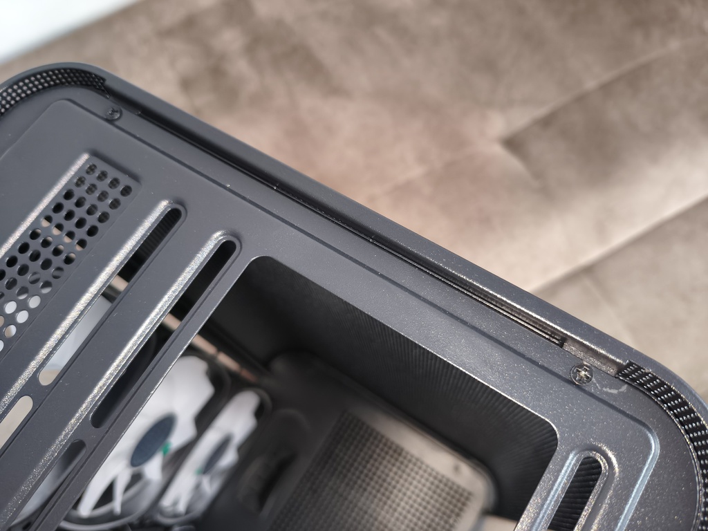 Górna część obudowy została przykryta metalowym panelem typu mesh, który można bardzo łatwo zdemontować. Zarówno panele boczne, jak i front, opierają się na systemie zatrzasków, co w praktyce pozwala na szybki dostęp do wnętrza bez użycia narzędzi.