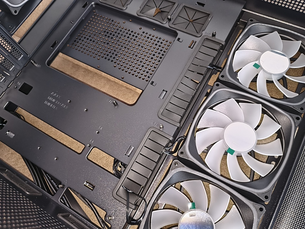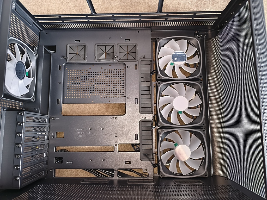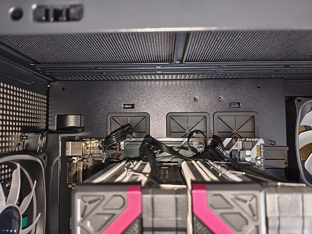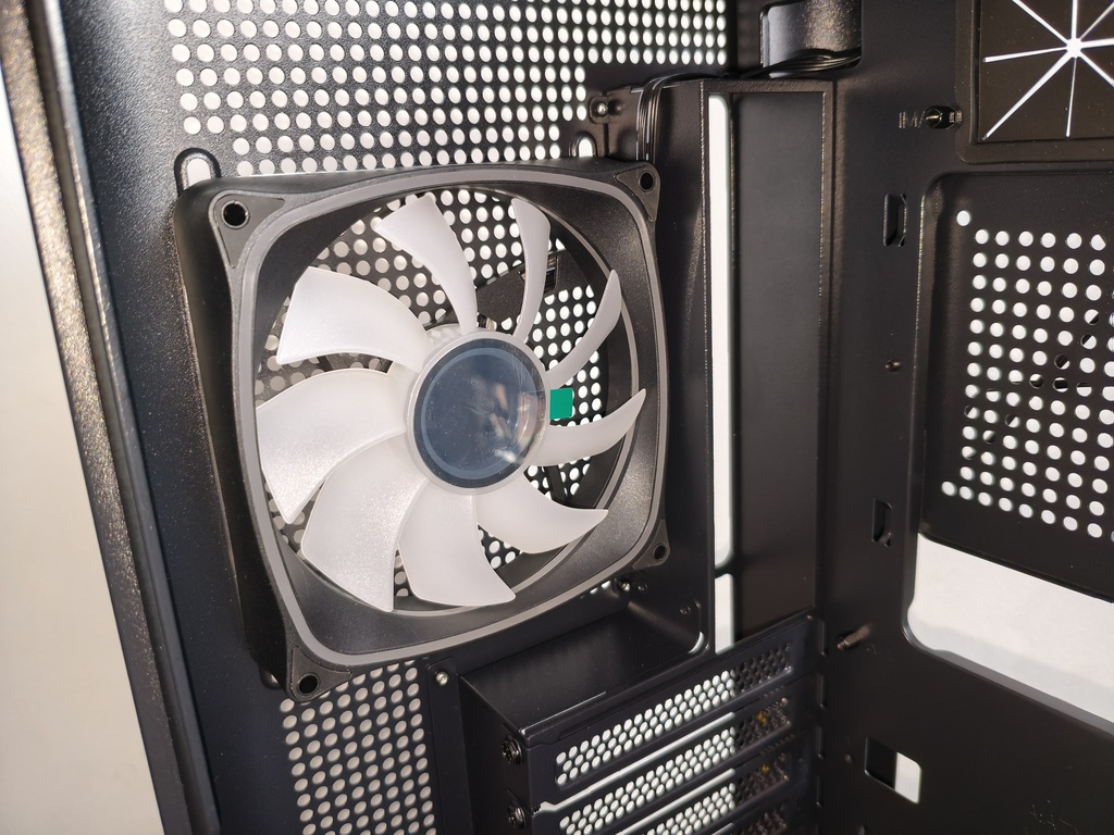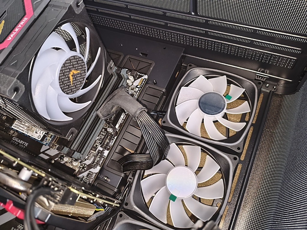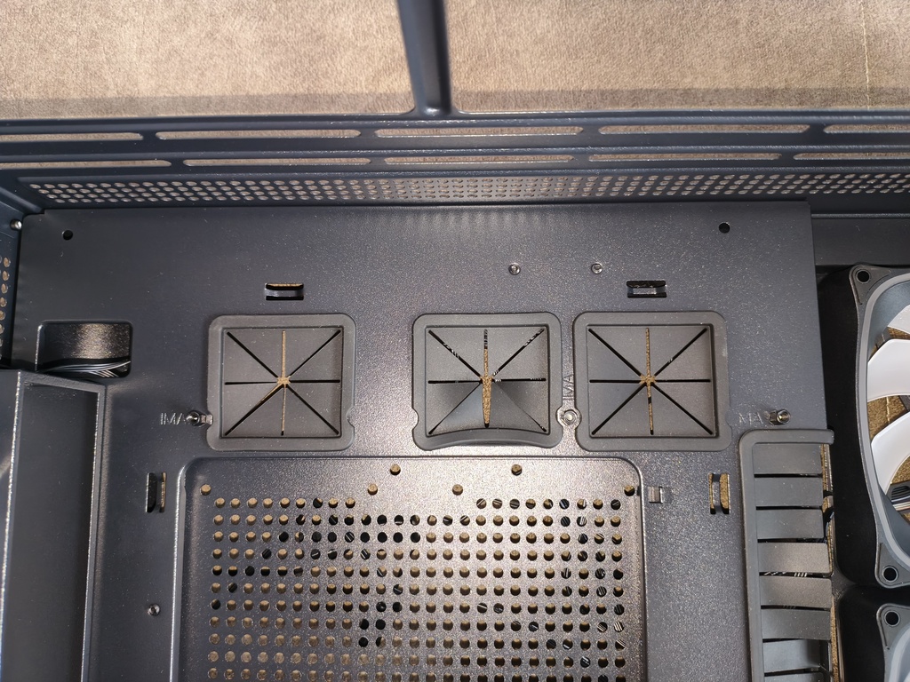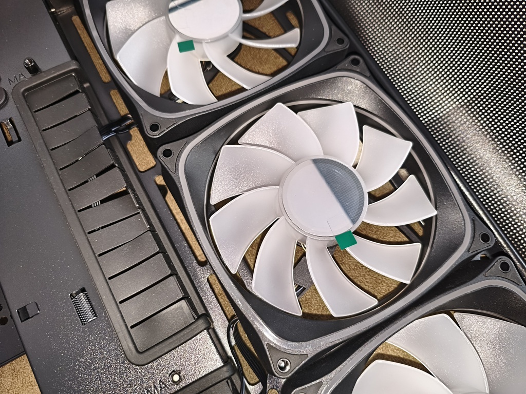 - przepływ powietrza nie do końca spełnia swoje zadanie z racji takiego konkretnego montażu głównych wentylatorów 120 mm