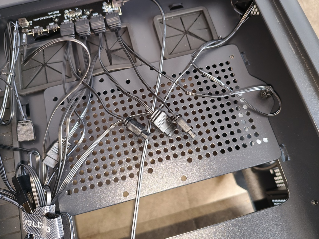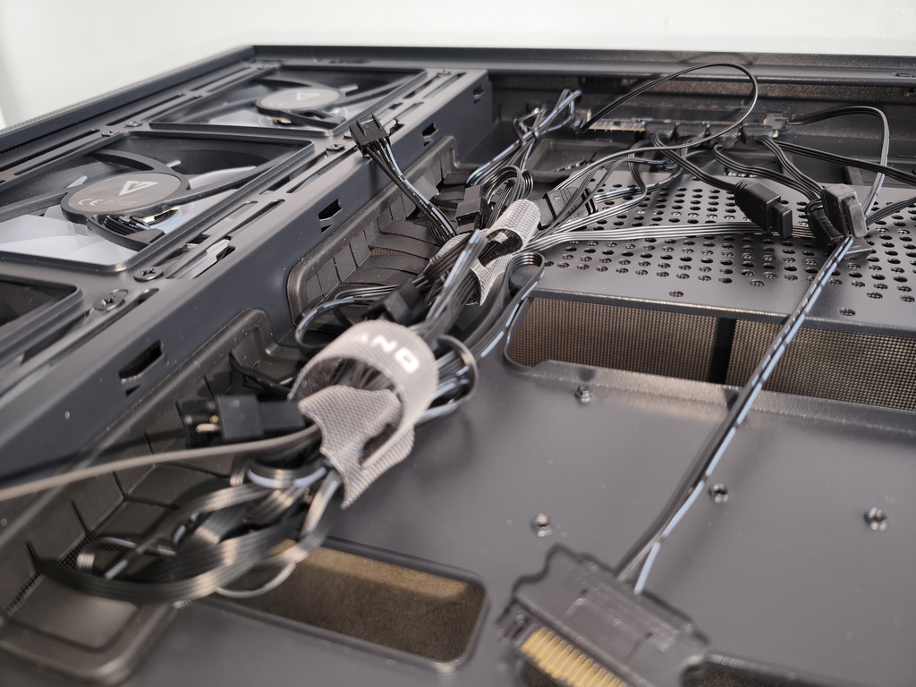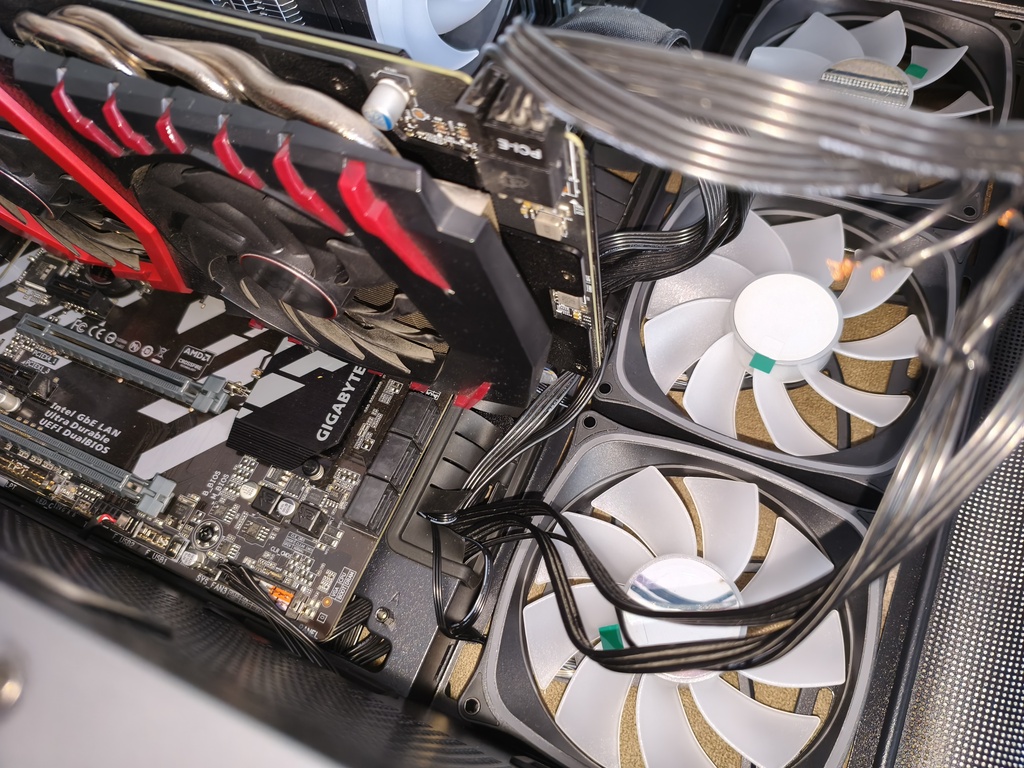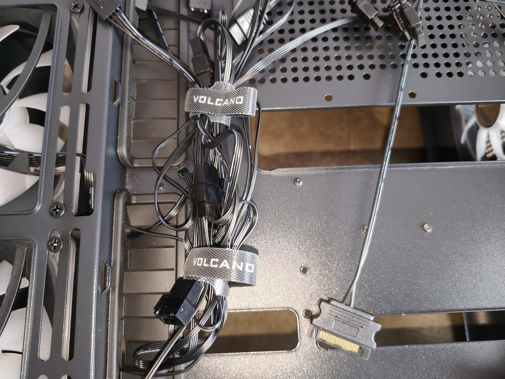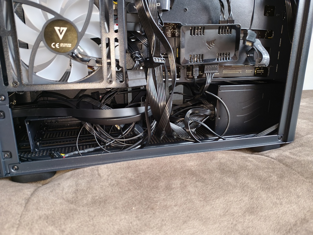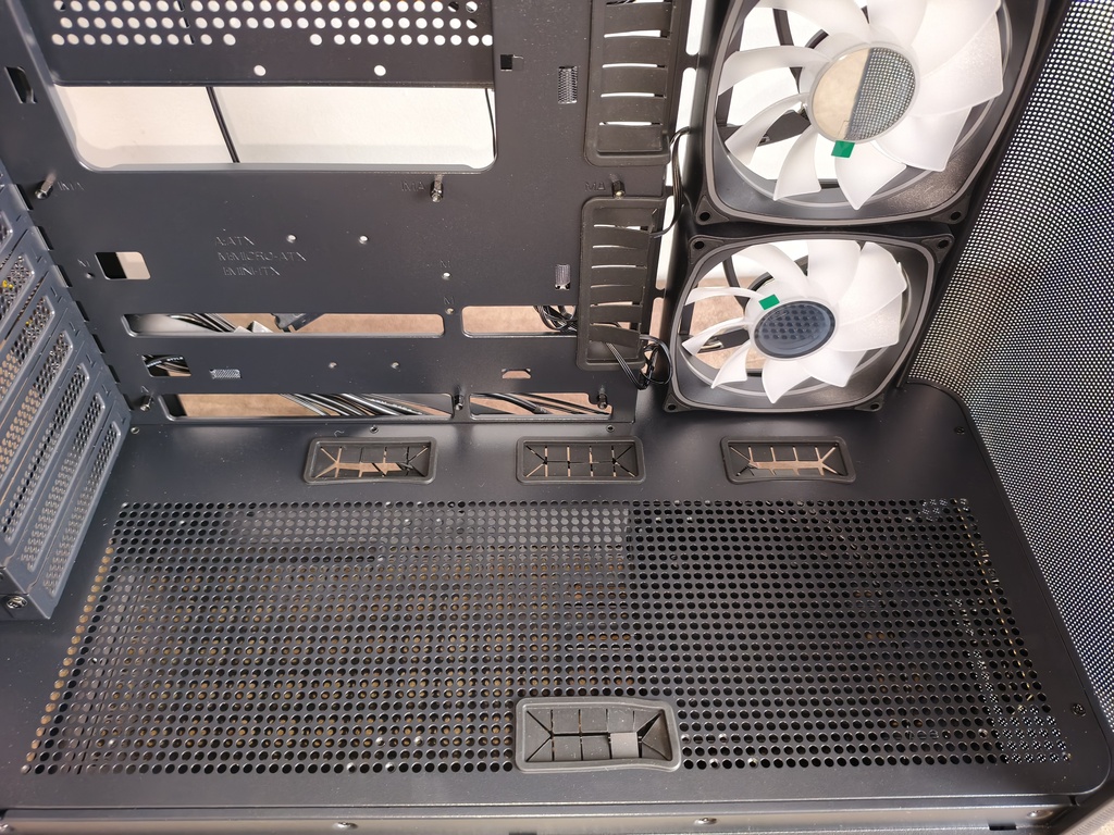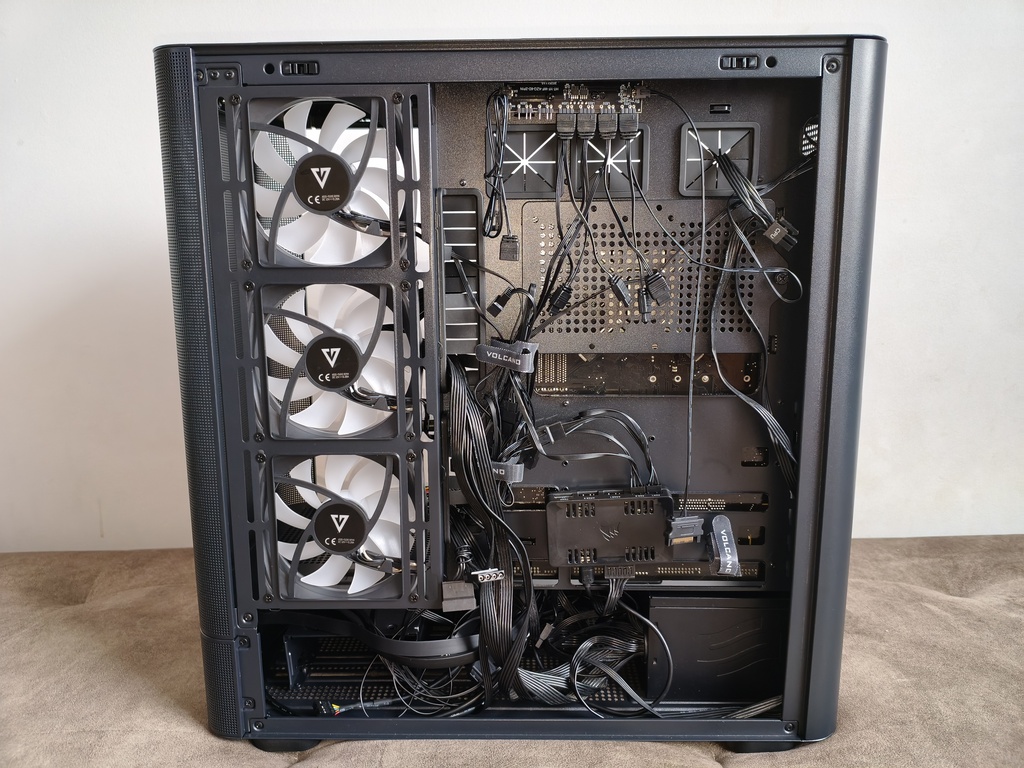 - przepływ powietrza nie do końca spełnia swoje zadanie z racji takiego konkretnego montażu głównych wentylatorów 120 mm