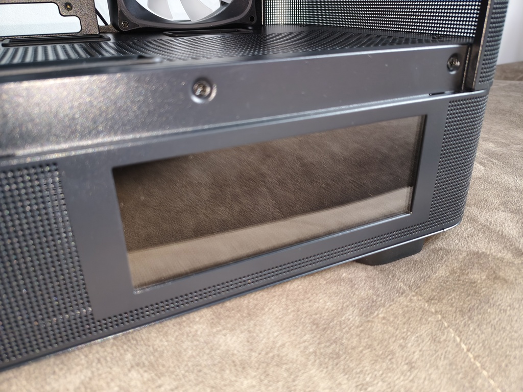 Obudowa posiada na froncie panel typu mesh o stosunkowo gęstej strukturze, który ma zapewniać sprawny dopływ powietrza do wnętrza obudowy i wspierać efektywną wentylację podzespołów.