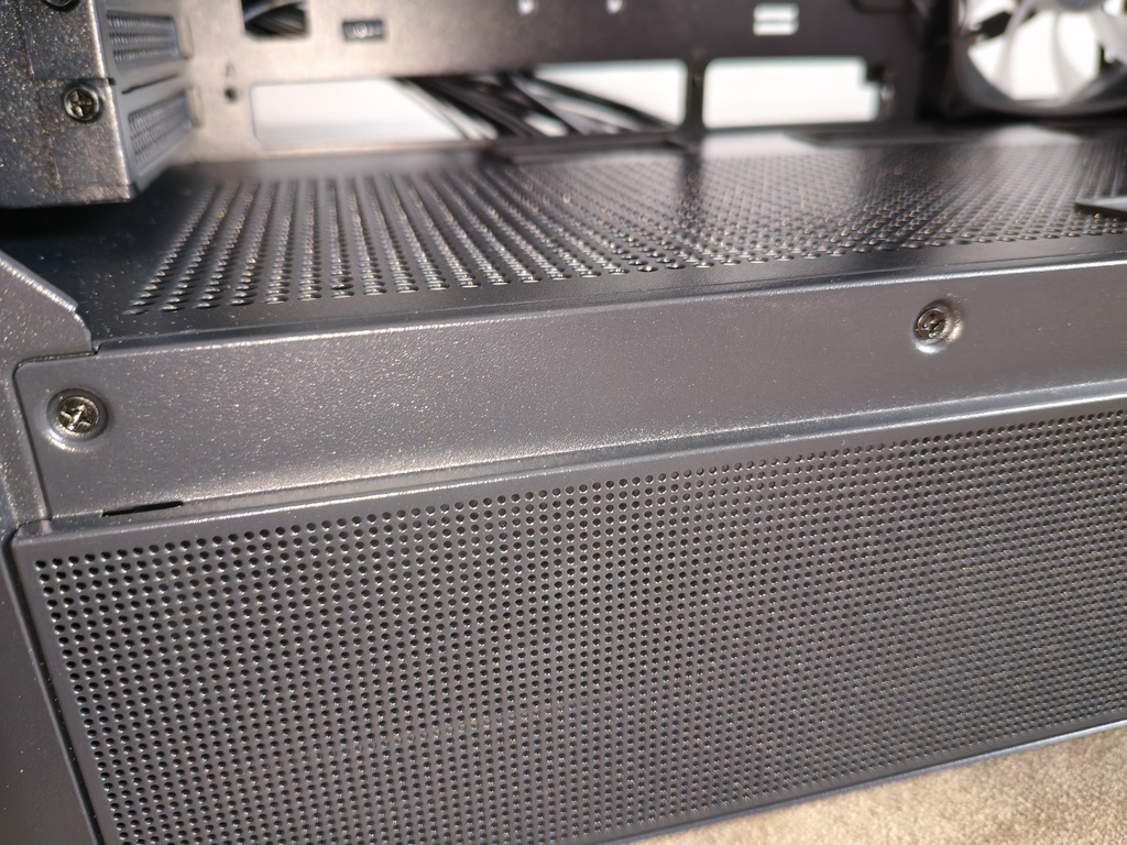 - brak filtra przeciwkurzowego na bocznym panelu metalowym, na wysokości wycięcia pod wentylatory