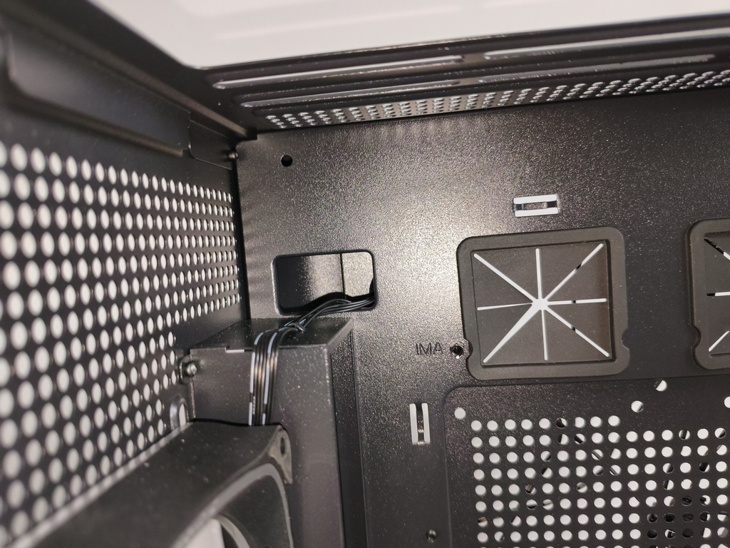 Jednocześnie producent zadbał o kompatybilność z nowoczesnymi płytami głównymi, oferując nam dodatkowe otwory pod konstrukcje z odwróconymi złączami. Bardzo duży otwór serwisowy w centralnej części umożliwia wygodny montaż backplate’u chłodzenia procesora (w przypadku platform Intel) bez konieczności demontażu całej płyty.