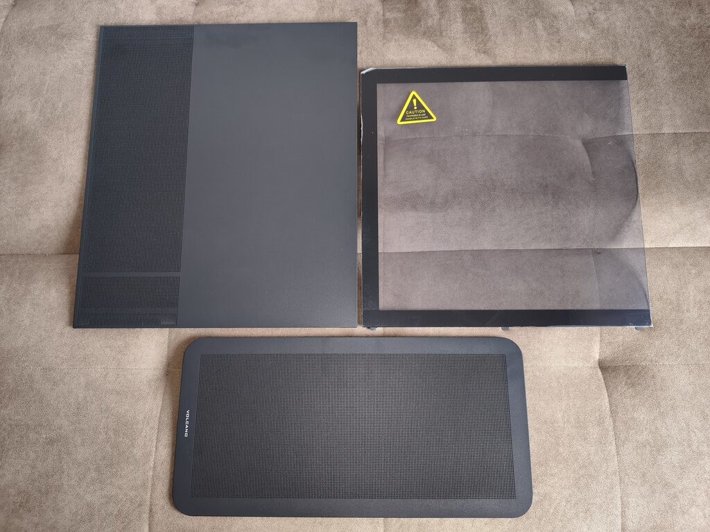 - ściereczkę do czyszczenia paneli szklanych z nadrukowanym logiem Volcano