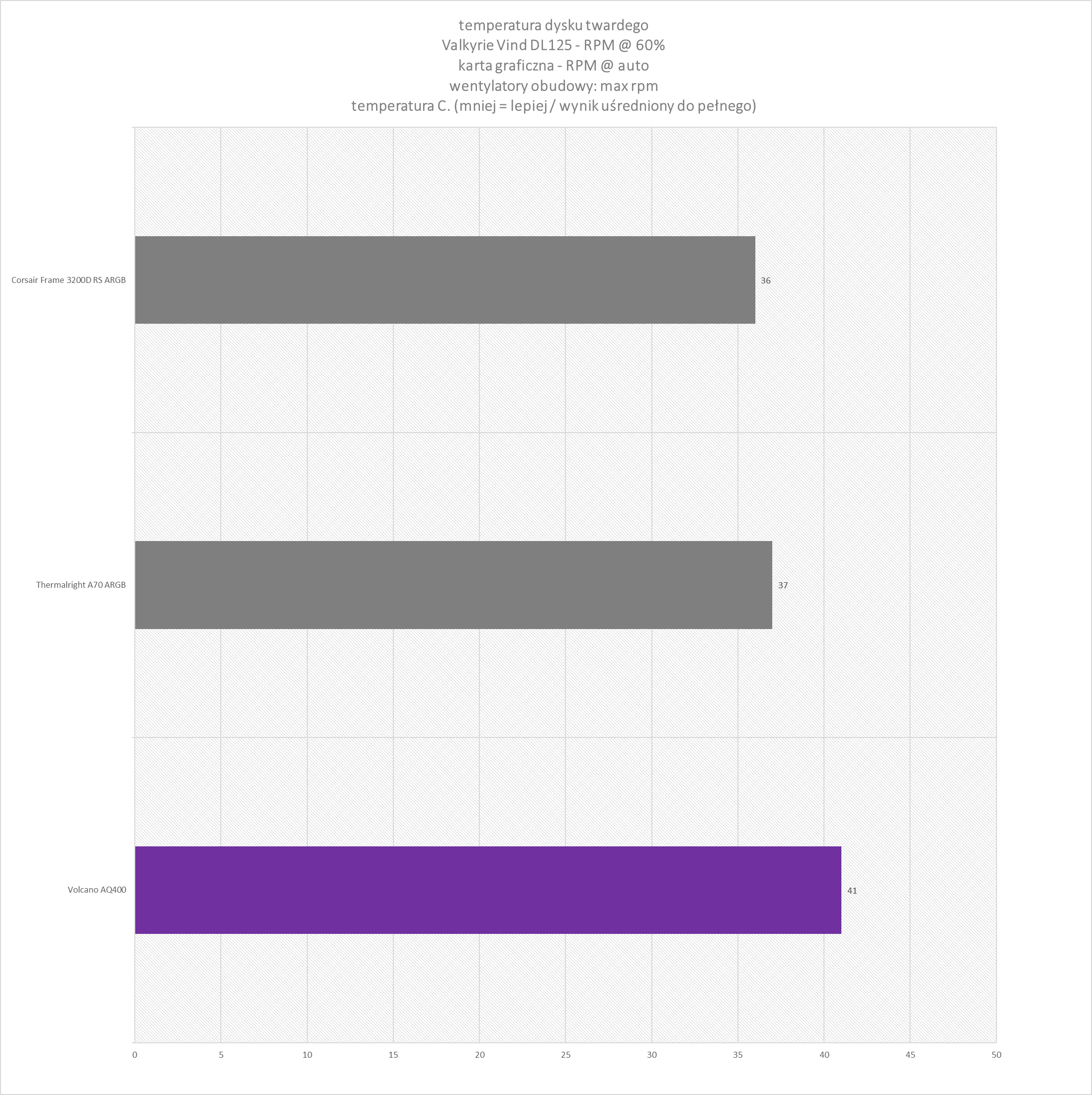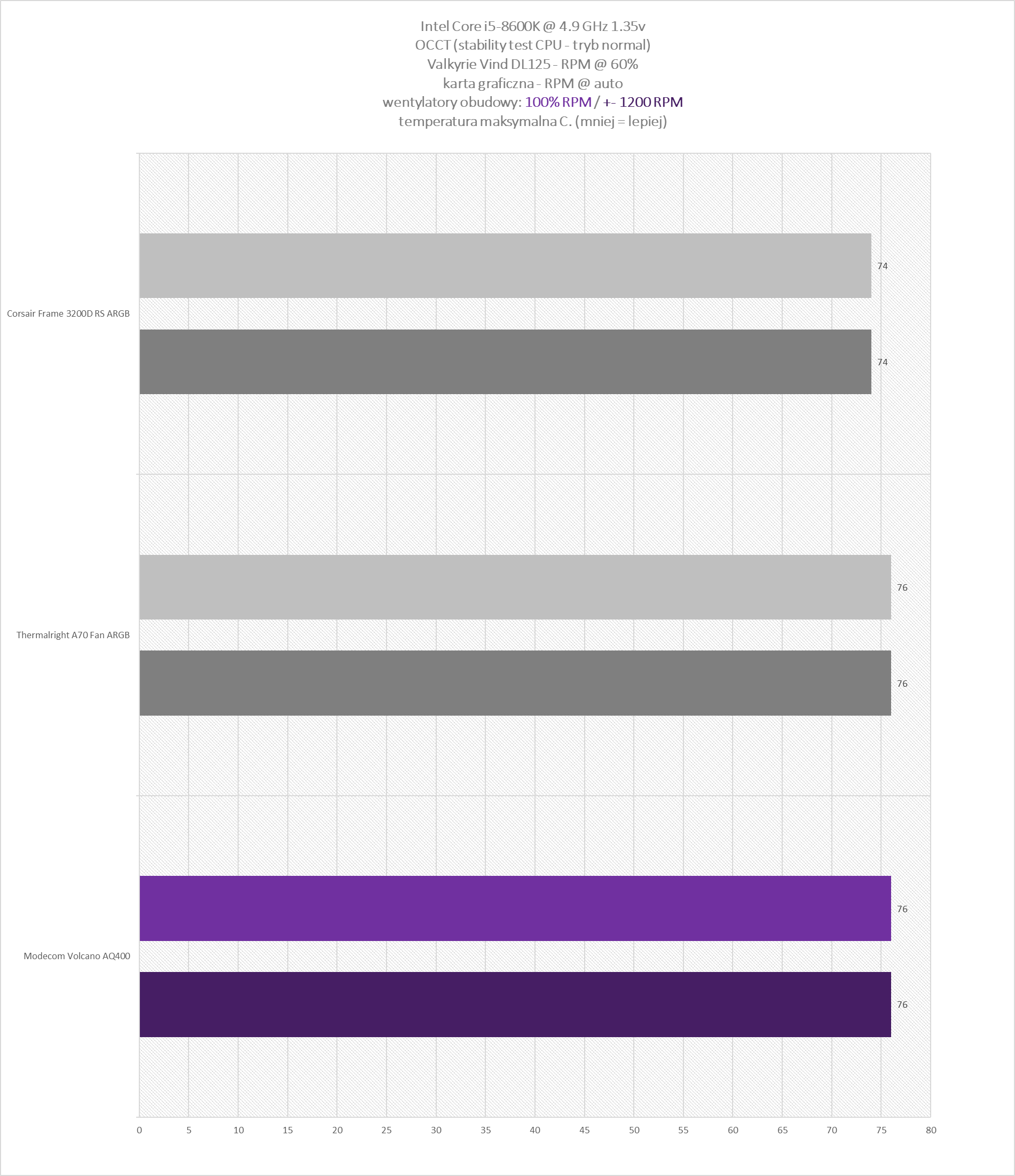 Takie podejście pozwala (tak uważam) ograniczyć wpływ samego chłodzenia CPU na wyniki i skupić się przede wszystkim na wydajności wentylatorów obudowy oraz jej konstrukcji.