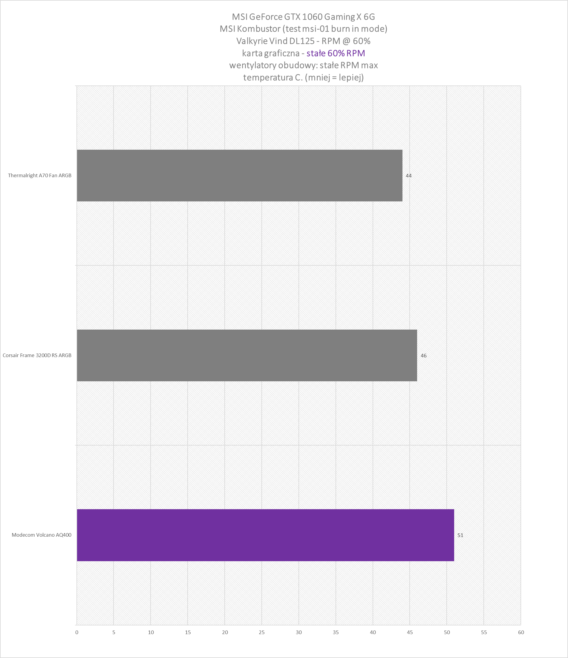 GPU: stałe 60% RPM, wentylatory w obudowie: max RPM