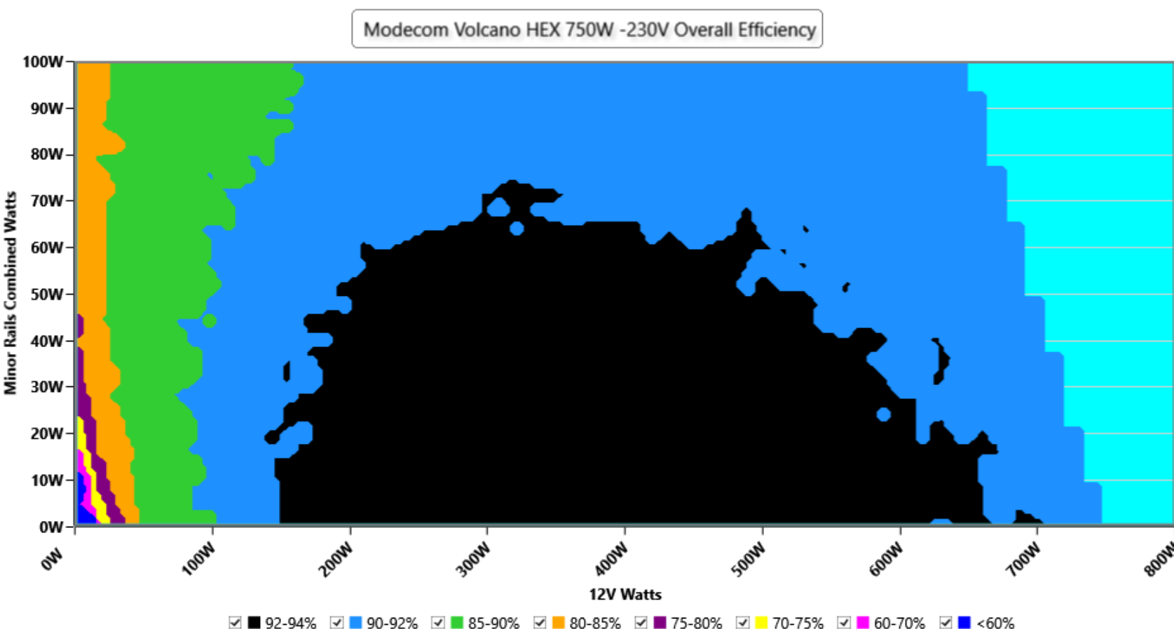 Modecom Volcano Hex 750W nie tylko spełnił oczekiwania w testach laboratoryjnych, ale również reprezentuje bardzo solidną propozycję wśród zasilaczy modularnych klasy 750 Wat dostępnych w przedziale cenowym do ~450 zł.