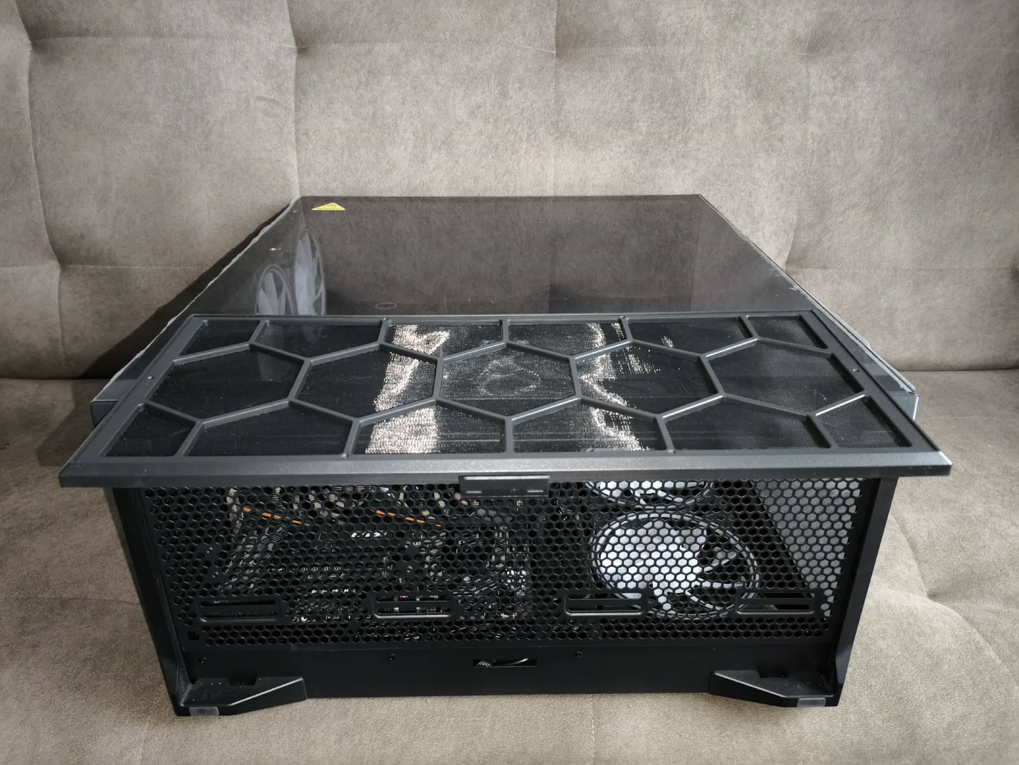 Górny, montowany na wcisk, panel to w zasadzie w całości filtr typu siatka mesh (bez osobnego filtra przeciwkurzowego magnetycznego). Spasowanie panelu z resztą obudowy nie budzi zastrzeżeń — całość trzyma się stabilnie i nie generuje niepożądanych luzów. Jeśli chodzi o opcje montażu to możemy tutaj zastosować: