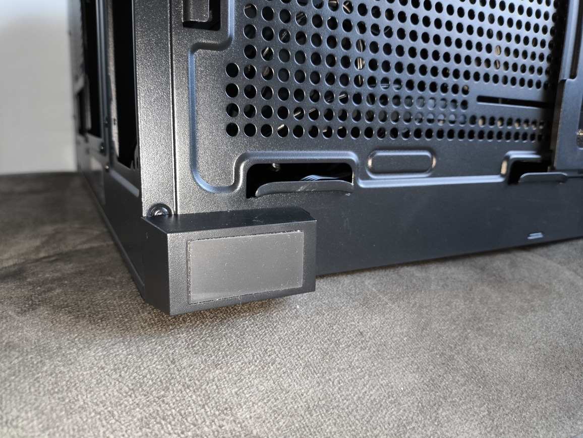 Konstrukcja stoi na czterech bardzo solidnych nóżkach. Posiadają one gumowe podkładki, zapewniające stabilność a także odpowiednią przestrzeń dla zasysania powietrza przez zasilacz.