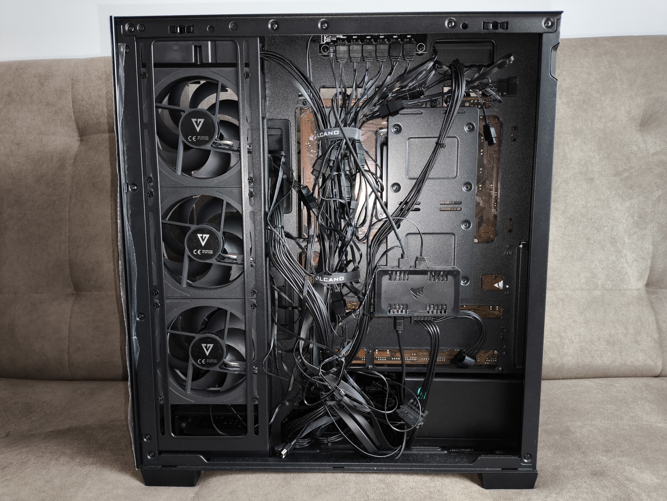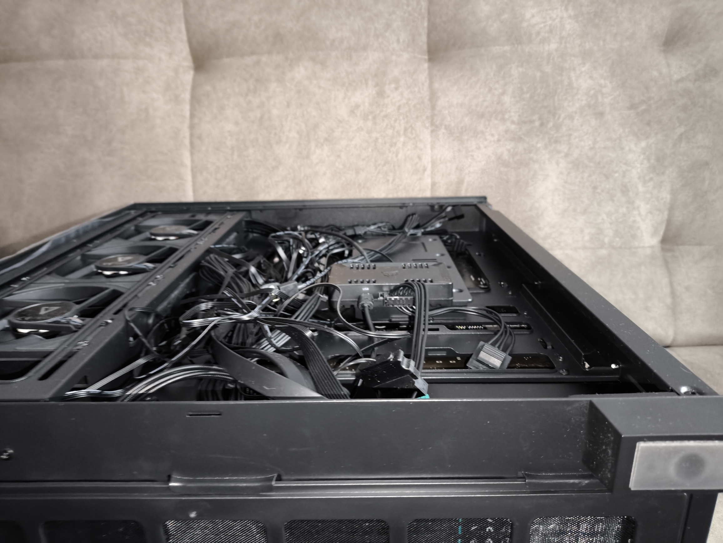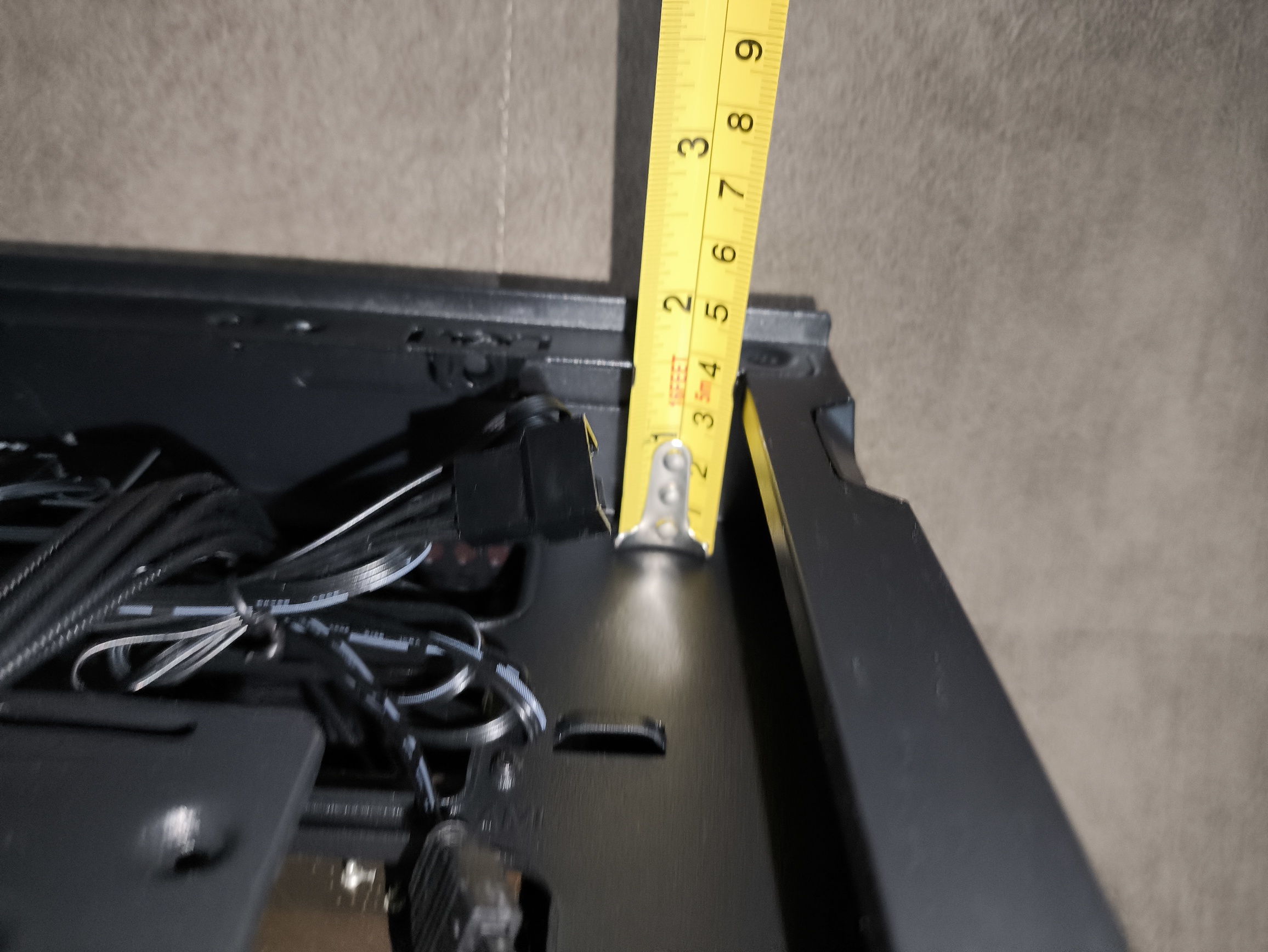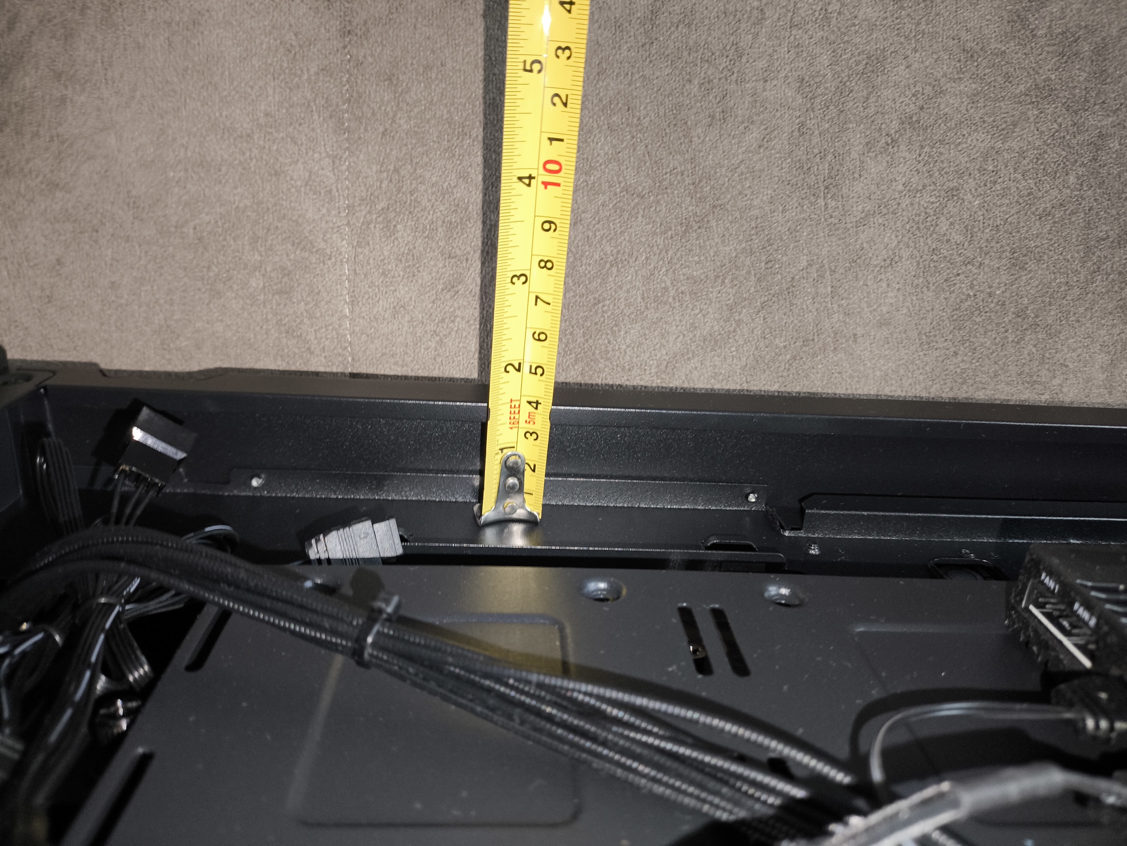 To dużo, nawet dla sztywnych przewodów ATX 24-pin. W starszym wariancie obudowy, z tego co pamiętam, miejsca było w sam raz, co jednak przy bardziej rozbudowanych konfiguracjach, zasilaczach z grubszymi wiązkami kabli lub pełnym okablowaniu ARGB potrafiło wymagać nieco więcej cierpliwości. W nowej wersji przestrzeń ta została nieco powiększona, dzięki czemu: