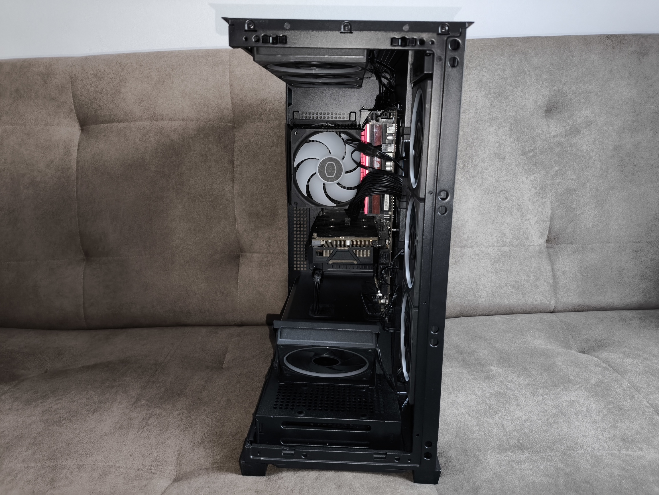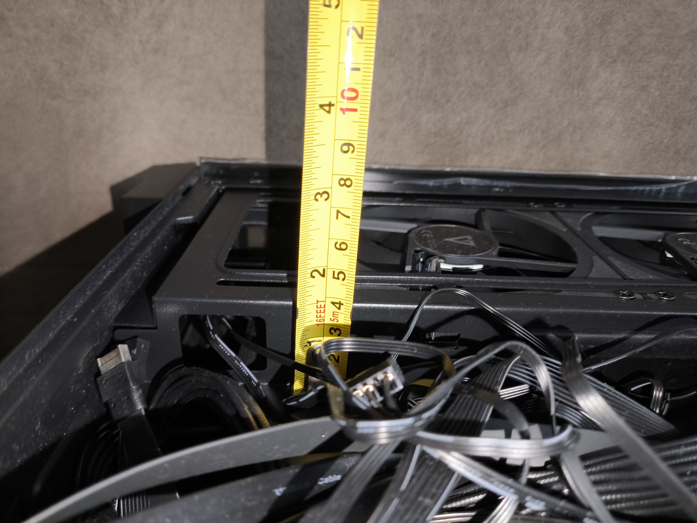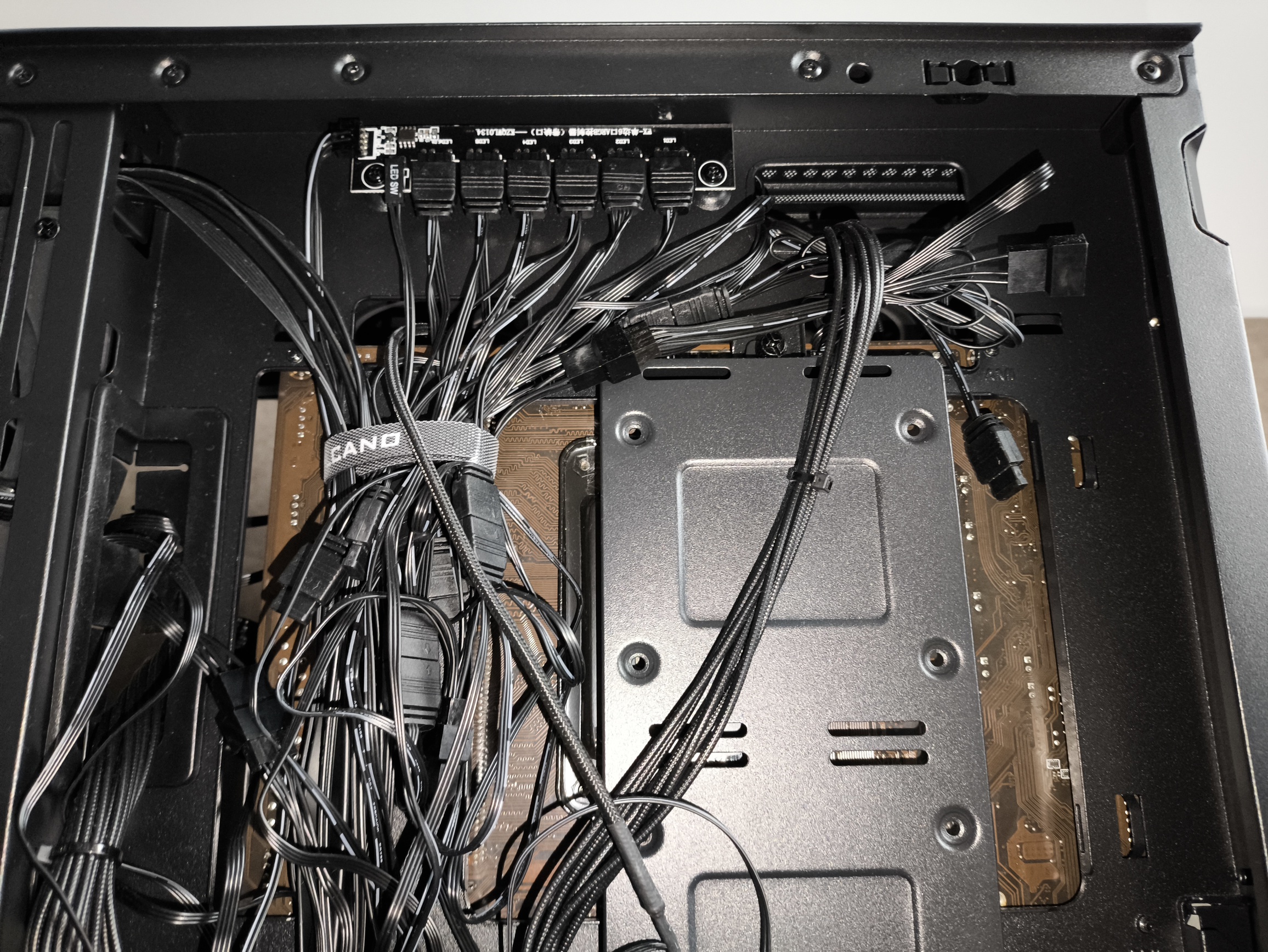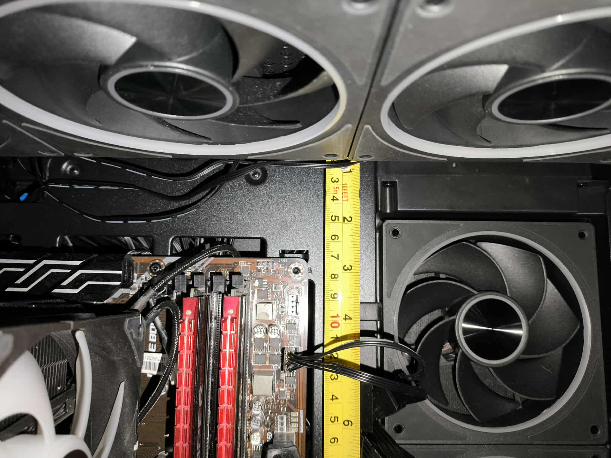 To dużo, nawet dla sztywnych przewodów ATX 24-pin. W starszym wariancie obudowy, z tego co pamiętam, miejsca było w sam raz, co jednak przy bardziej rozbudowanych konfiguracjach, zasilaczach z grubszymi wiązkami kabli lub pełnym okablowaniu ARGB potrafiło wymagać nieco więcej cierpliwości. W nowej wersji przestrzeń ta została nieco powiększona, dzięki czemu: