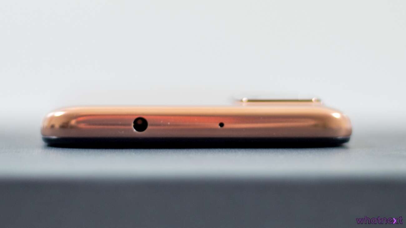 Załatwmy jednak szybko sprawę górnej i dolnej krawędzi. Na tej pierwszej znalazło się wyjście mini jack i luka dla mikrofonu, która wylądowała również na dolnej w towarzystwie portu USB-C 2.0 oraz sześciu otworom, za którymi siedzi głośnik mono.