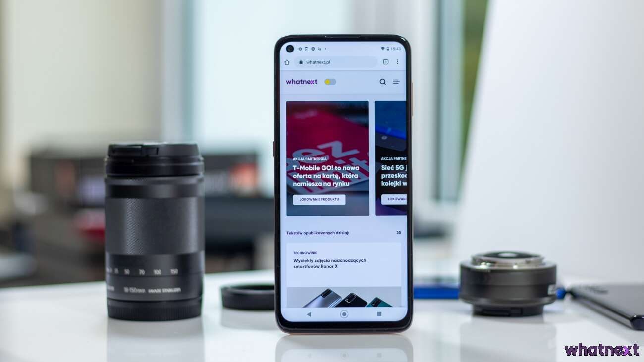 Motorola postawiła na wyświetlacz LCD typu TFT ze standardowym odświeżaniem na poziomie 60 Hz w rozdzielczości Full HD+, która cieszy nasze oczy 6,81-calową przekątną i standardem HDR 10. Przy 386 pikselach na cal wyświetlacz pokrywa około 84,3% frontu, gdzie najwięcej “pozbawionego wyświetlacza” miejsca zajmuje belka na górze i na dole. Samą taflę wyświetlacza mąci z kolei okrągła plamka w lewym górnym rogu. Tak, to po prostu aparat.