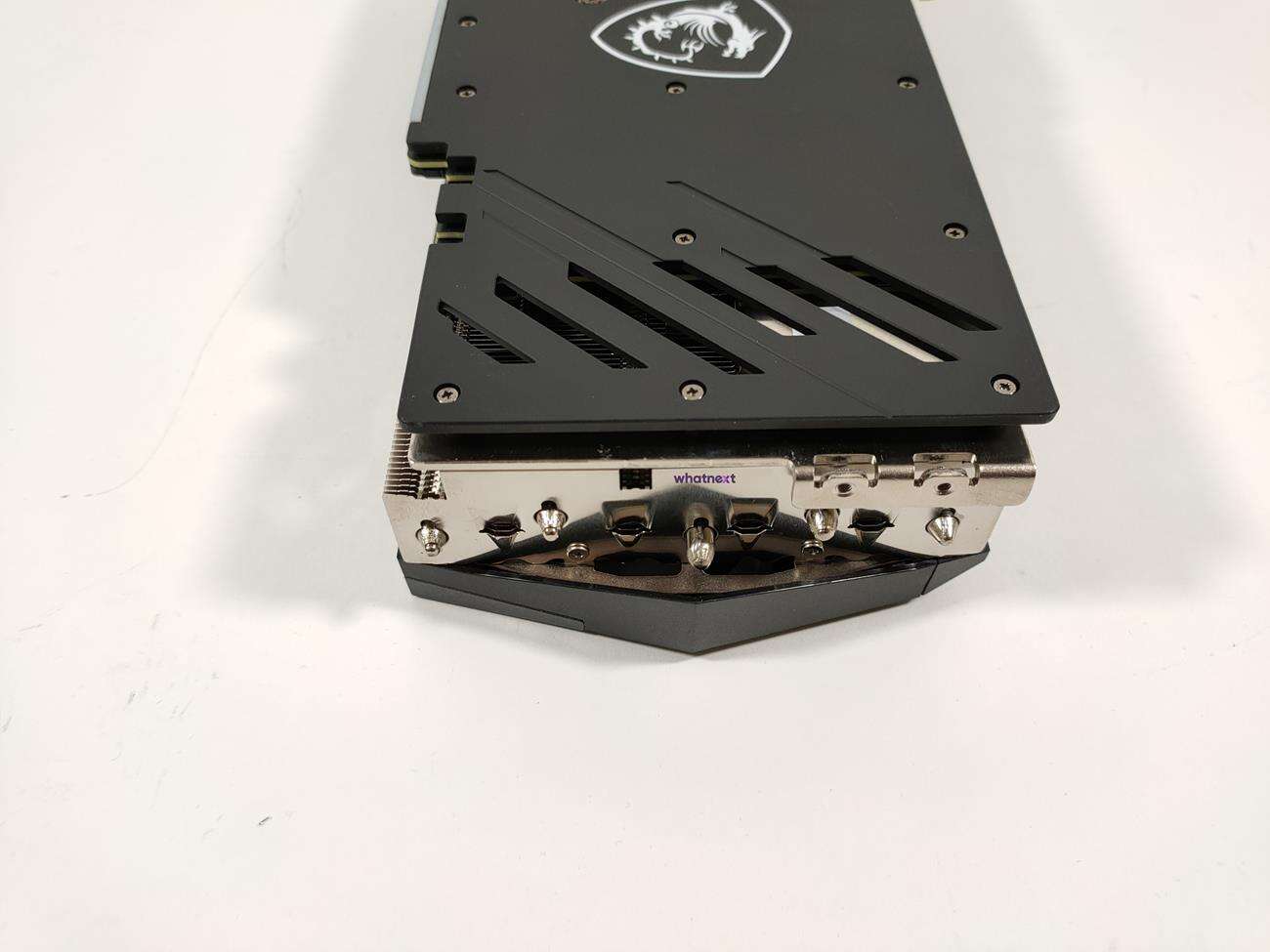 MSI GeForce RTX 3060 Ti Gaming X Trio zasilany jest z dwóch złączy PCI-E, a sugerowany zasilacz to 650 W. Karta ma trzy wyjścia Displayport 1.4a oraz jedno HDMI 2.1. Grafika jest fabrycznie podkręcona – zegar boost wynosi 1830 MHz. Natomiast w benchmarku Metro Exodus 2560 x 1440 px karta miała średnie taktowanie równe 1956 MHz.