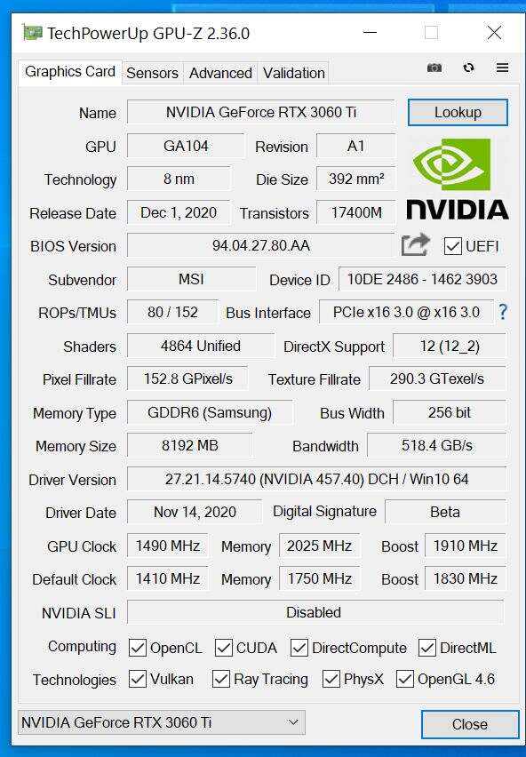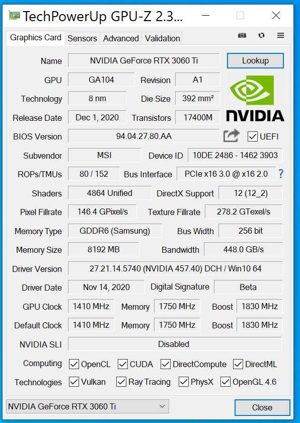 Test MSI GeForce RTX 3060 Ti Gaming X Trio
