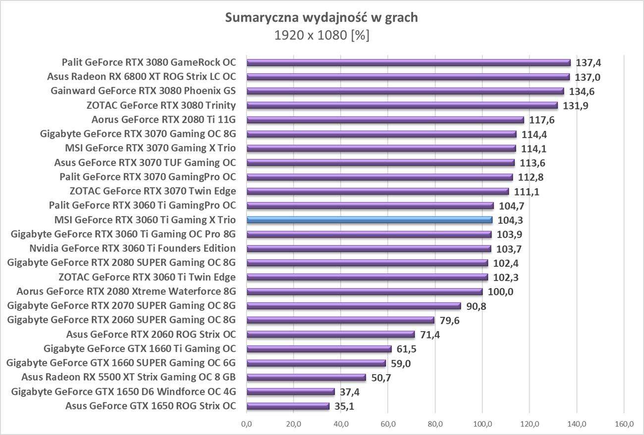 Sumaryczna wydajność MSI GeForce RTX 3060 Ti Gaming X Trio