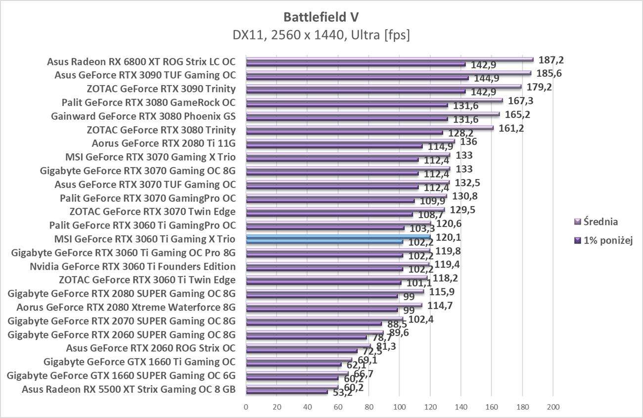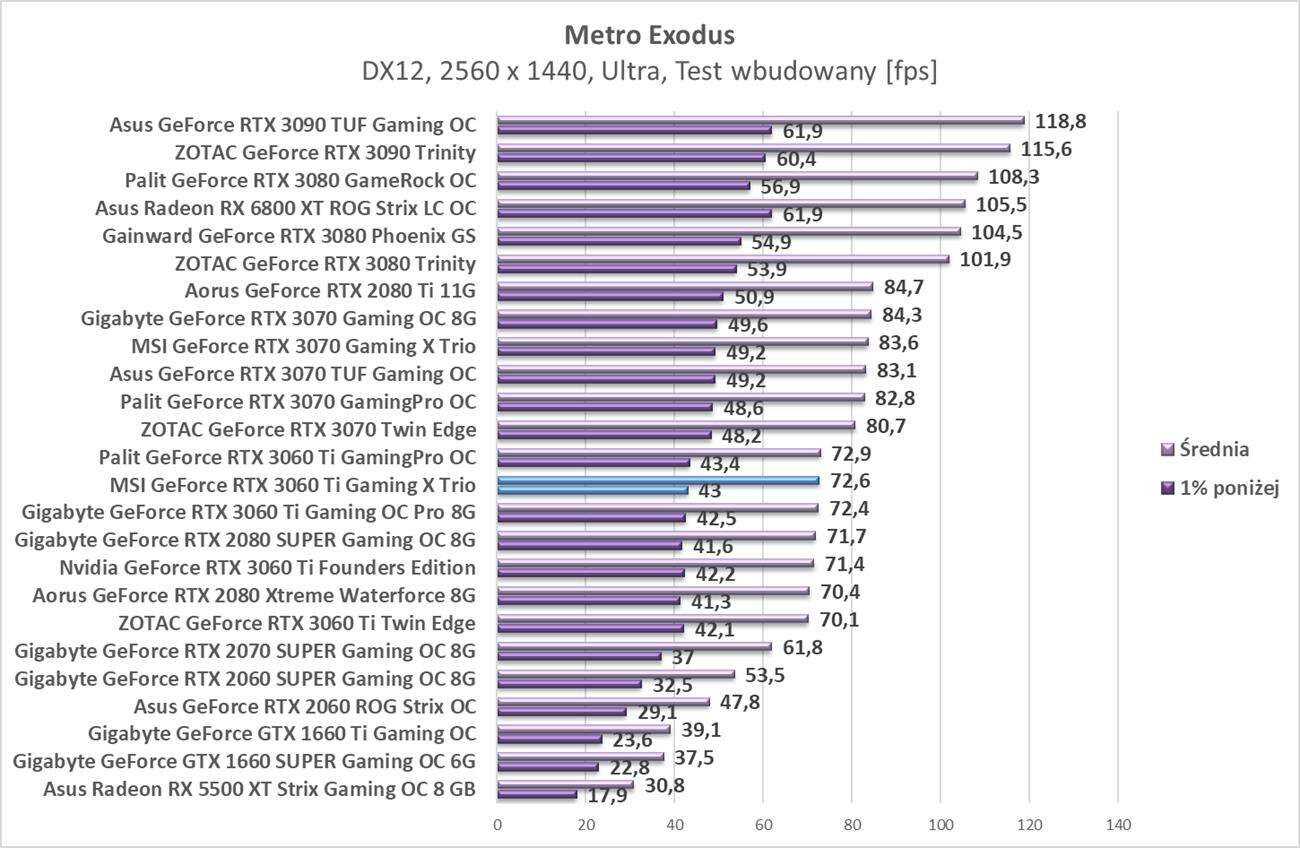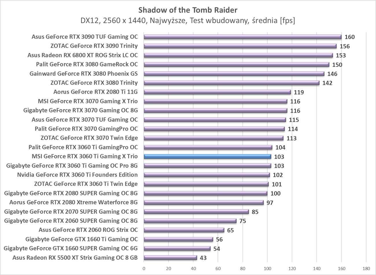 Testy MSI GeForce RTX 3060 Ti Gaming X Trio w rozdzielczości 2560 x 1440