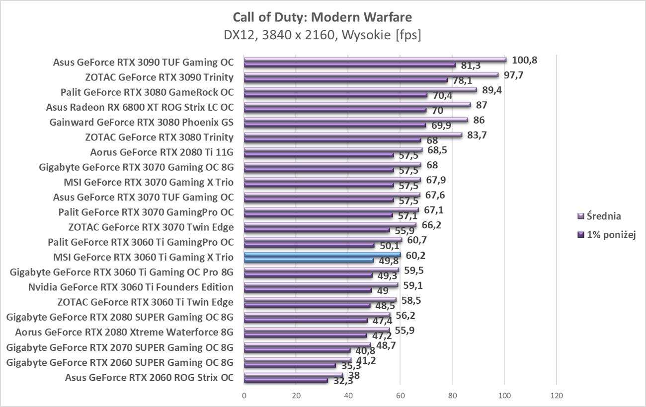 Testy MSI GeForce RTX 3060 Ti Gaming X Trio w rozdzielczości 3840 x 2160
