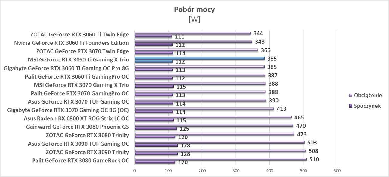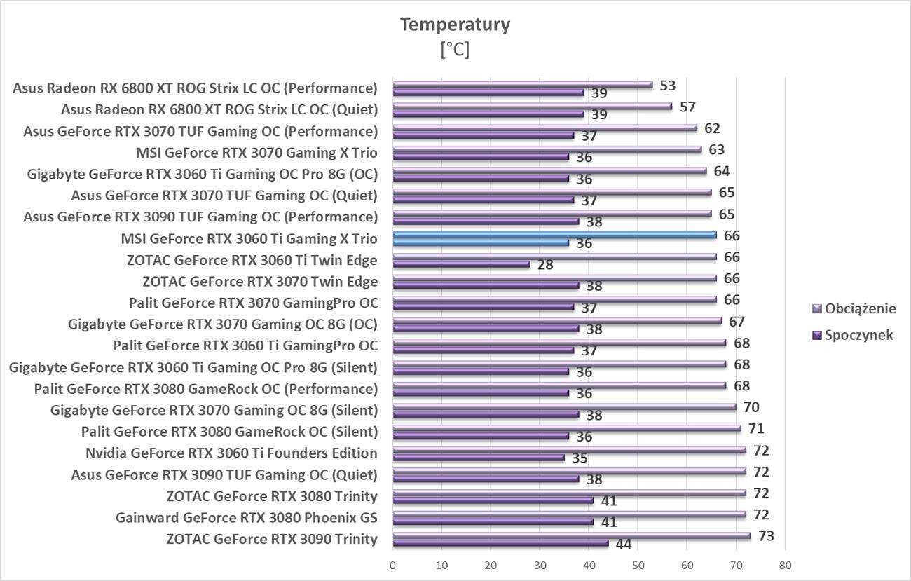 Temperatury, głośność, pobór mocy MSI GeForce RTX 3060 Ti Gaming X Trio