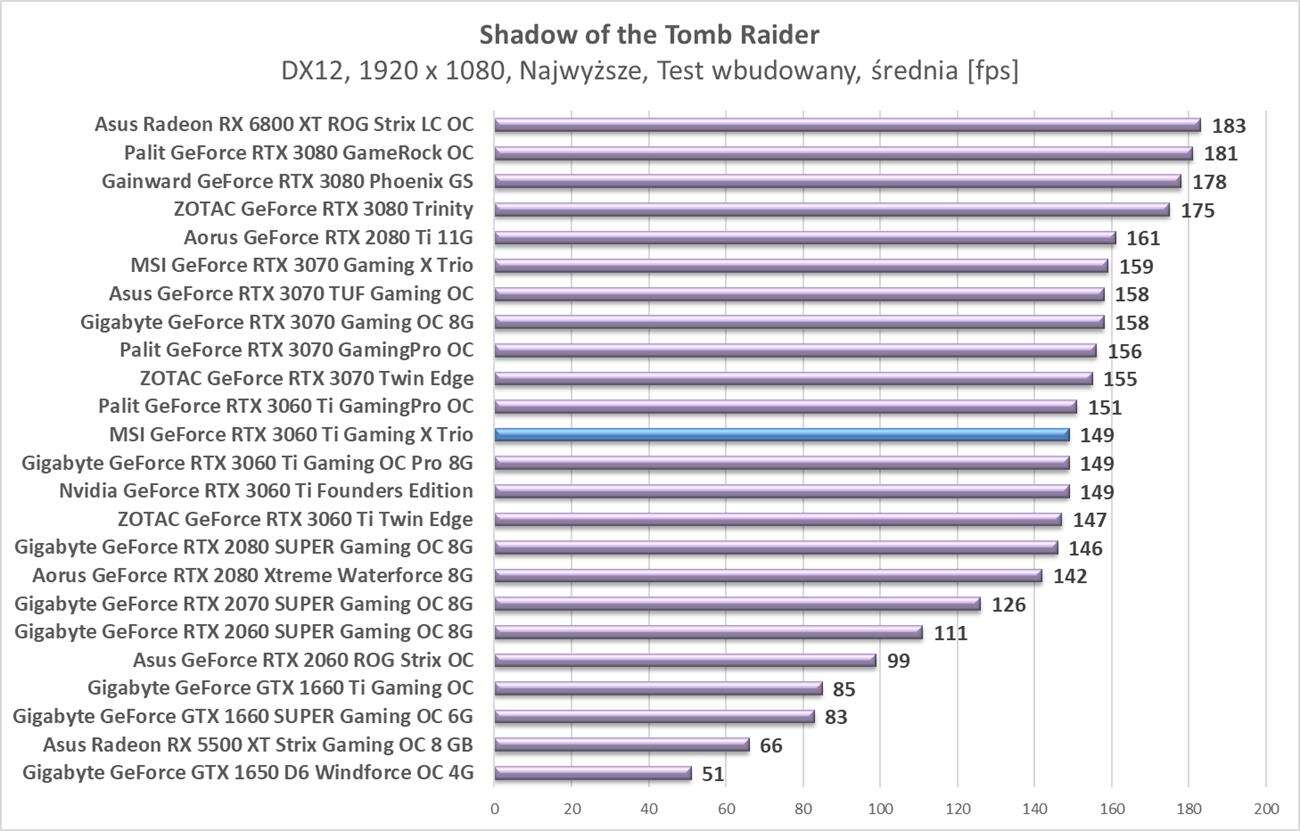 Testy MSI GeForce RTX 3060 Ti Gaming X Trio w rozdzielczości 1920 x 1080
