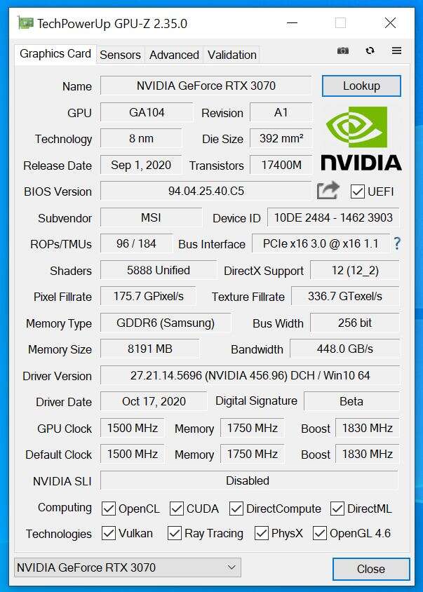 Podkręcanie MSI GeForce RTX 3070 Gaming X Trio