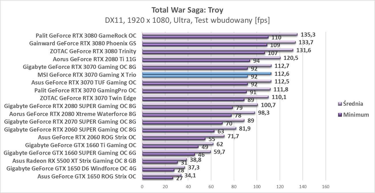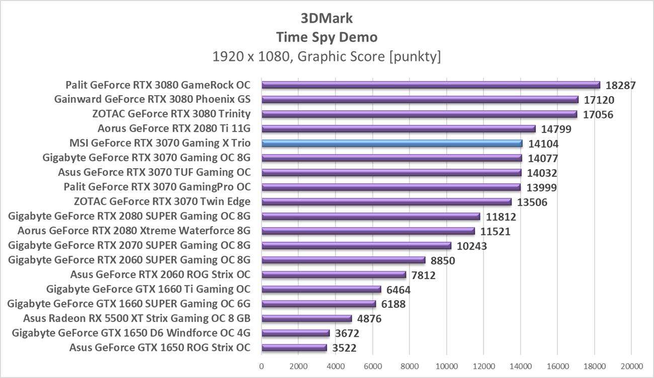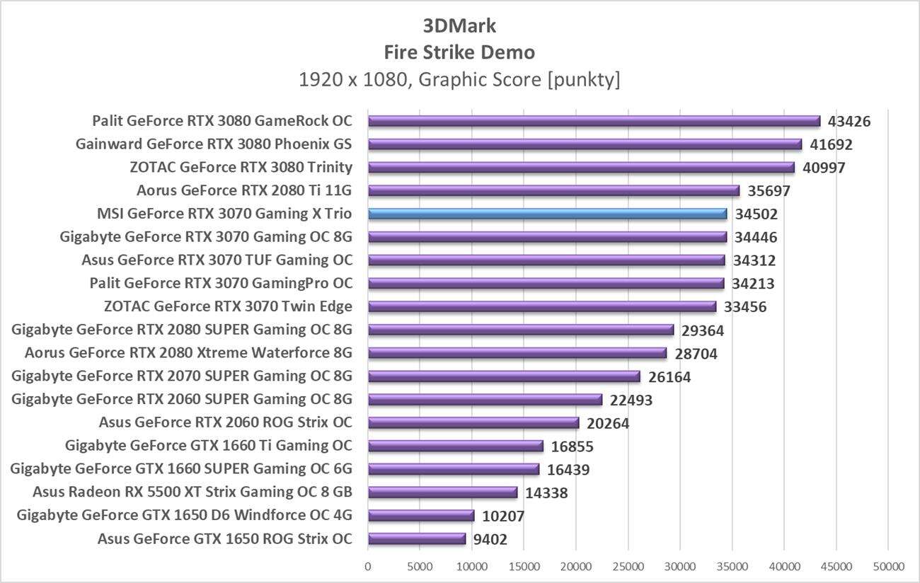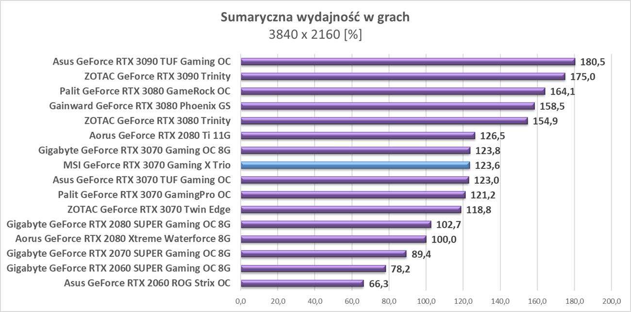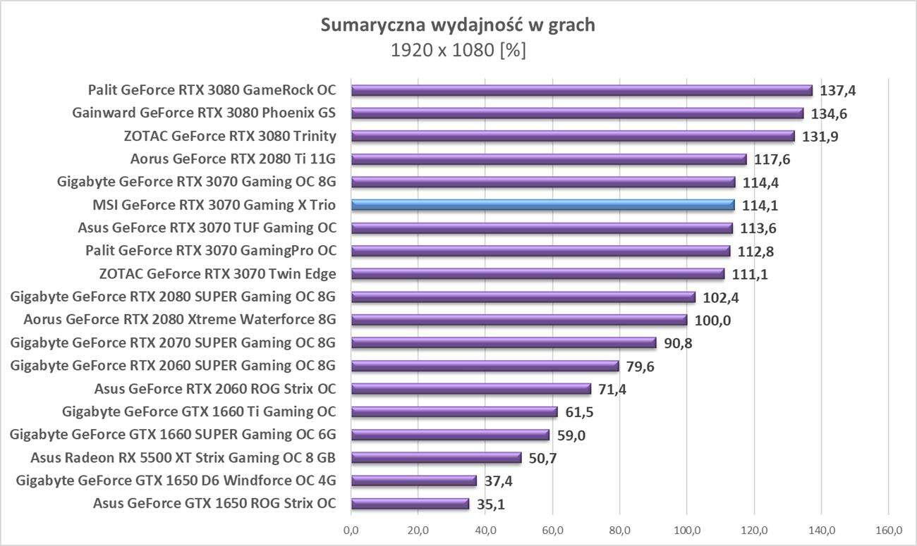 Sumaryczna wydajność MSI GeForce RTX 3070 Gaming X Trio