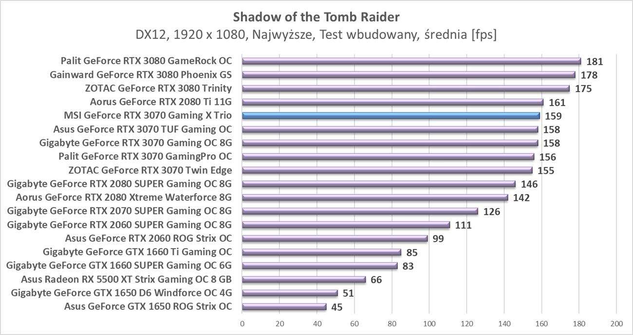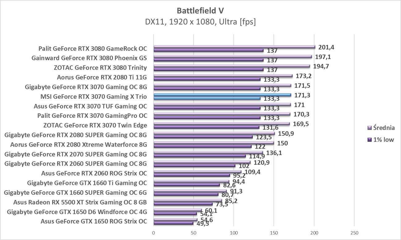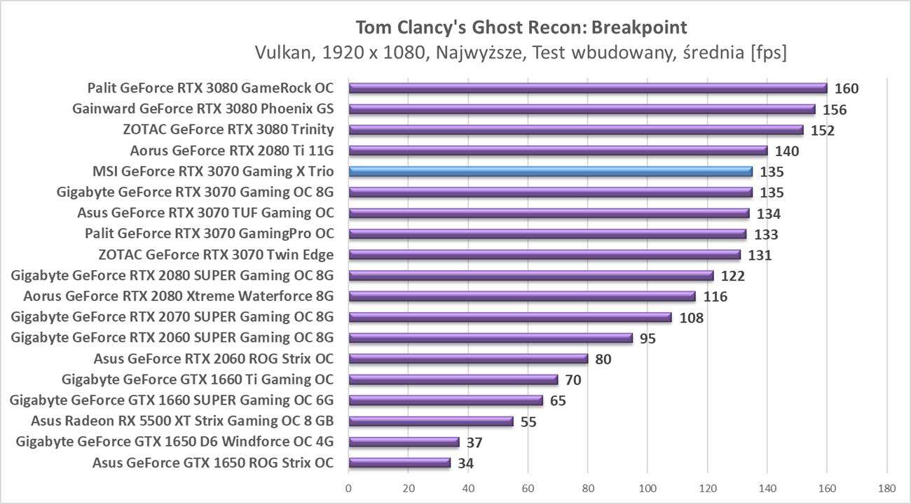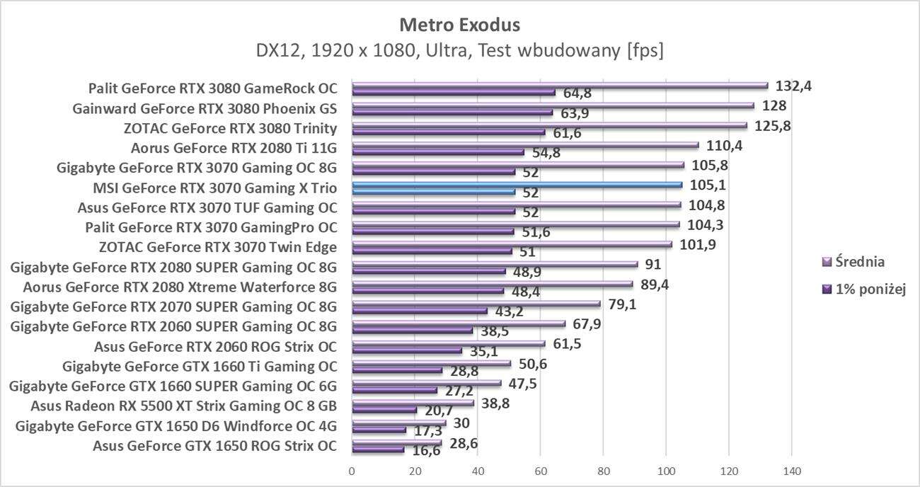 Testy MSI GeForce RTX 3070 Gaming X Trio w rozdzielczości 1920 x 1080