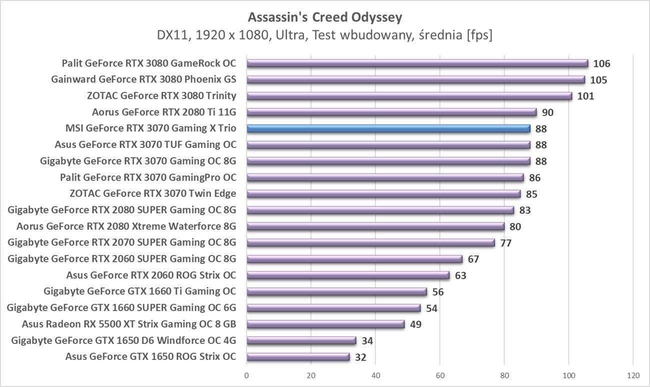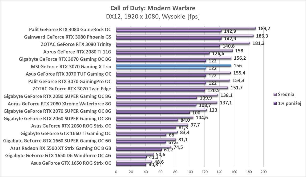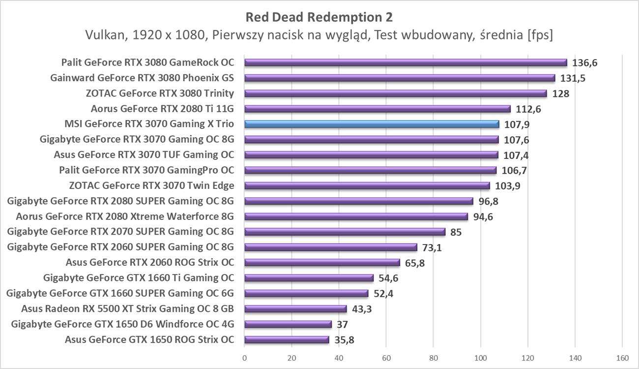 Testy MSI GeForce RTX 3070 Gaming X Trio w rozdzielczości 1920 x 1080