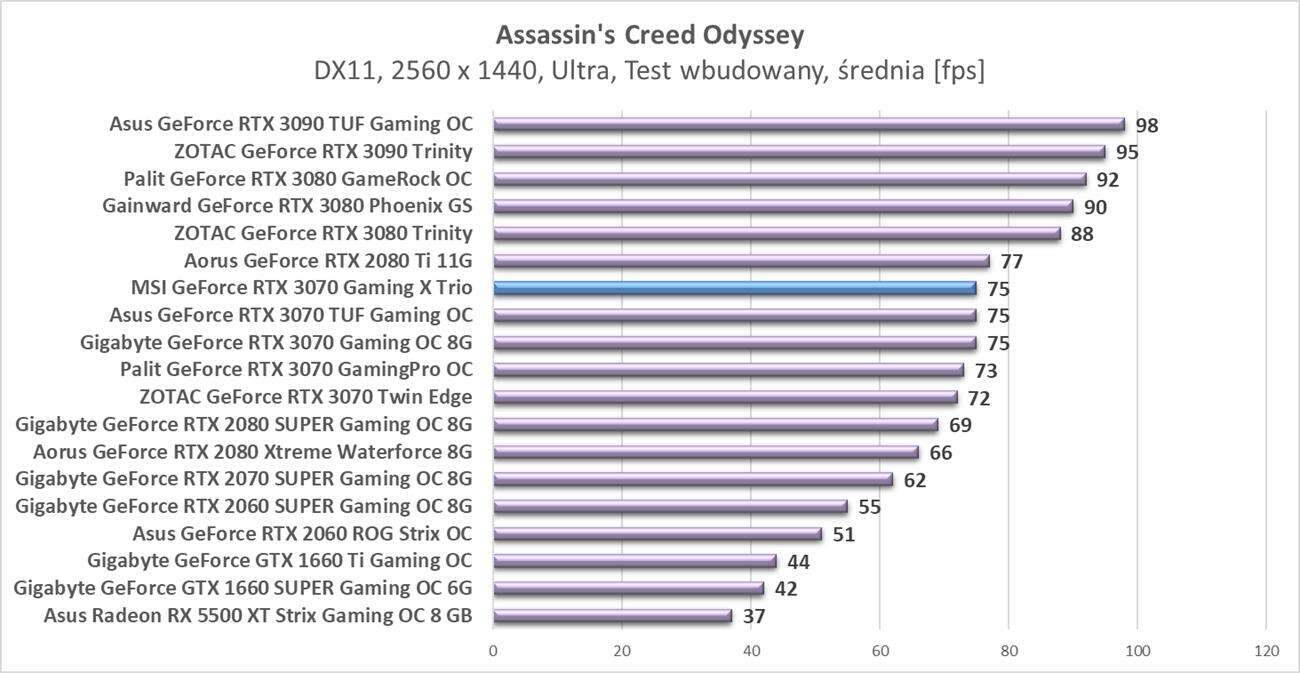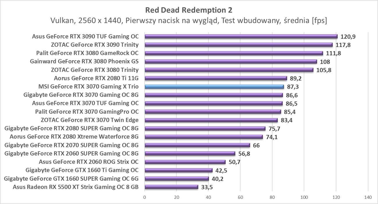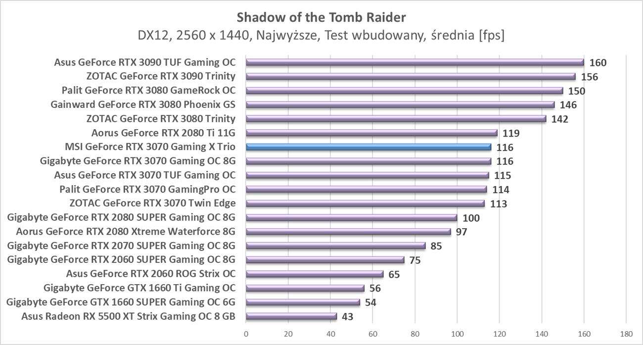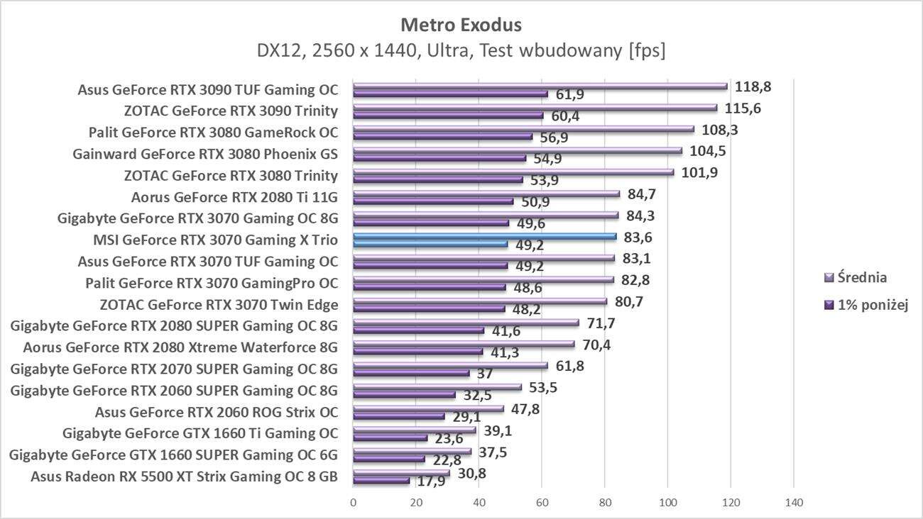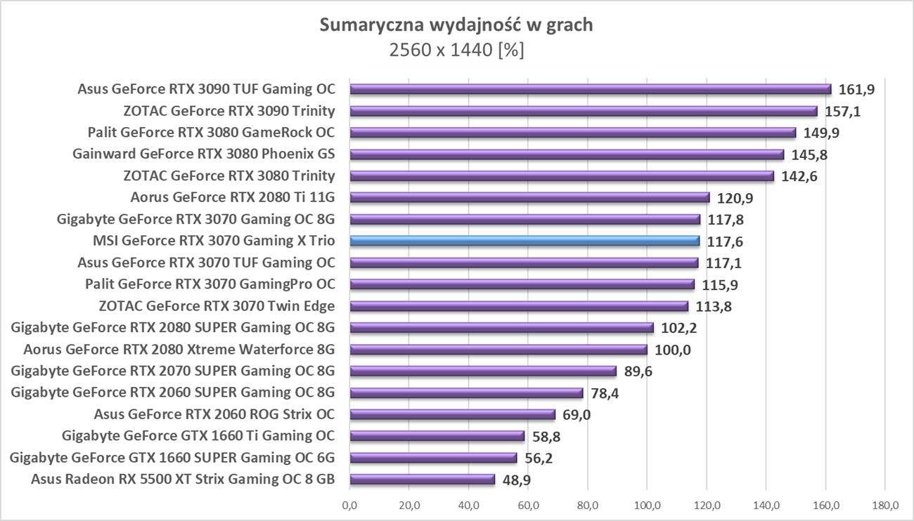 Testy MSI GeForce RTX 3070 Gaming X Trio w rozdzielczości 2560 x 1440