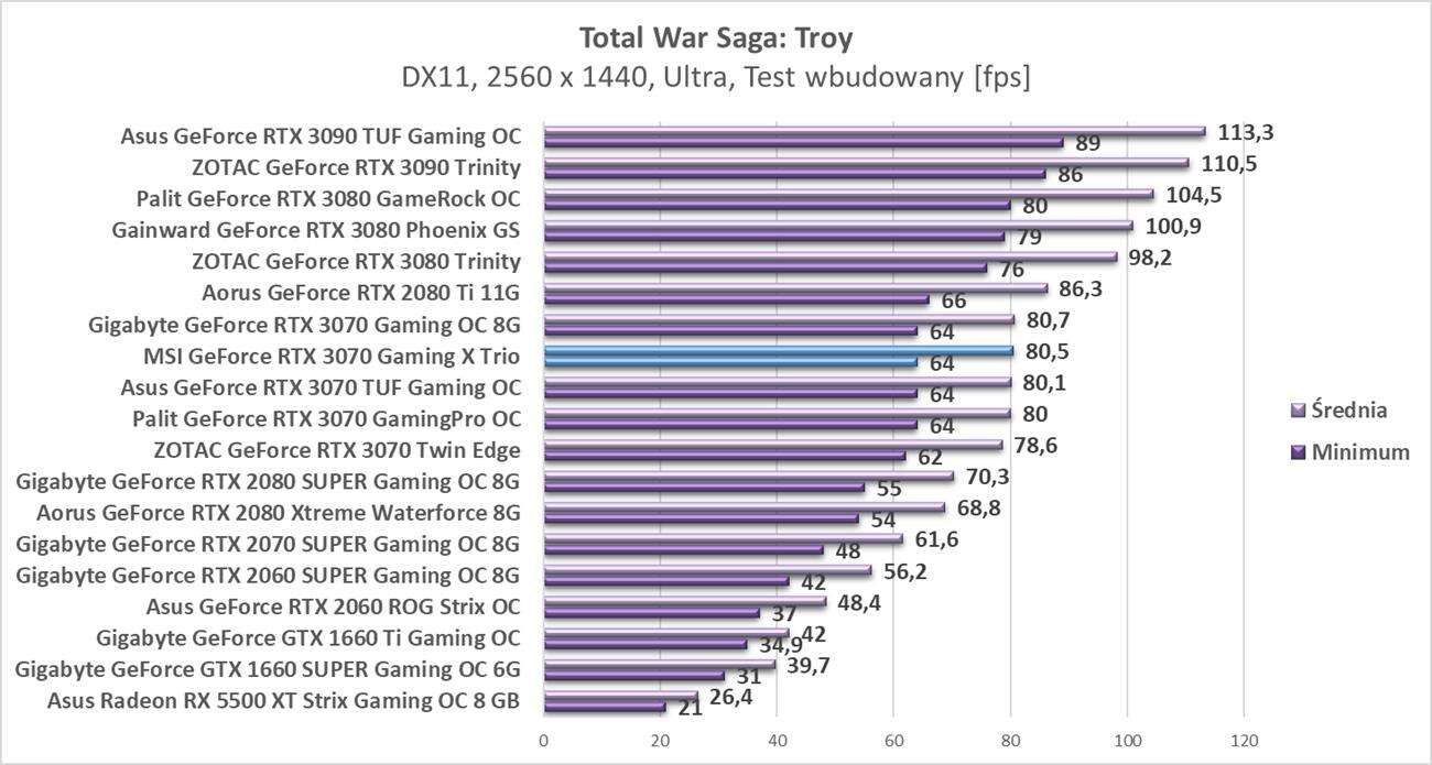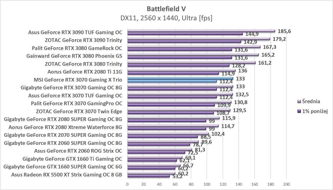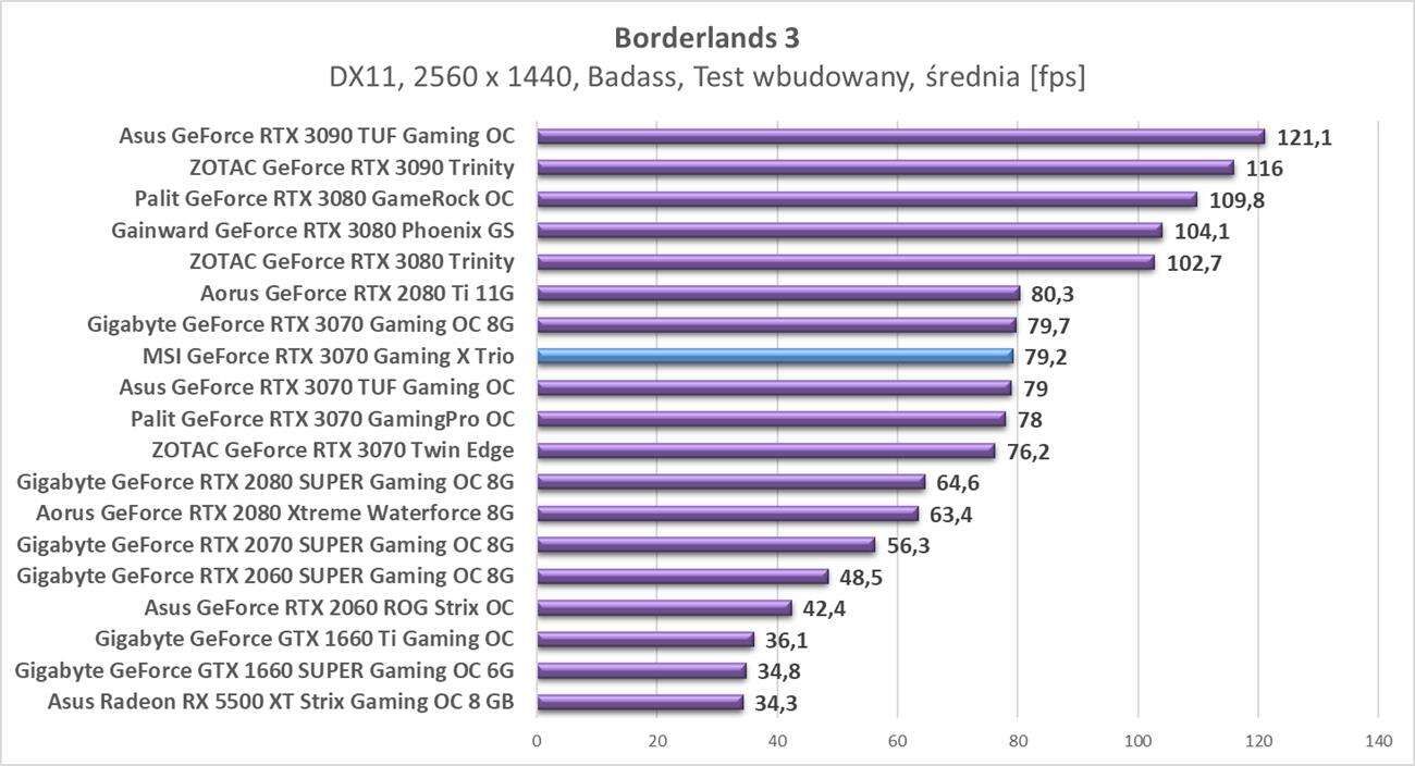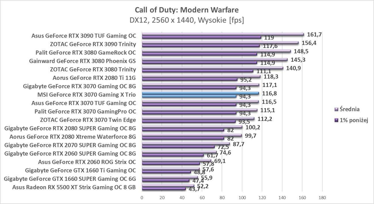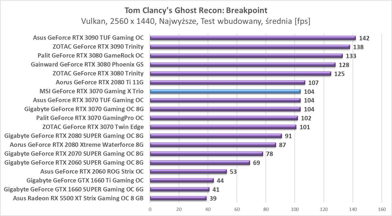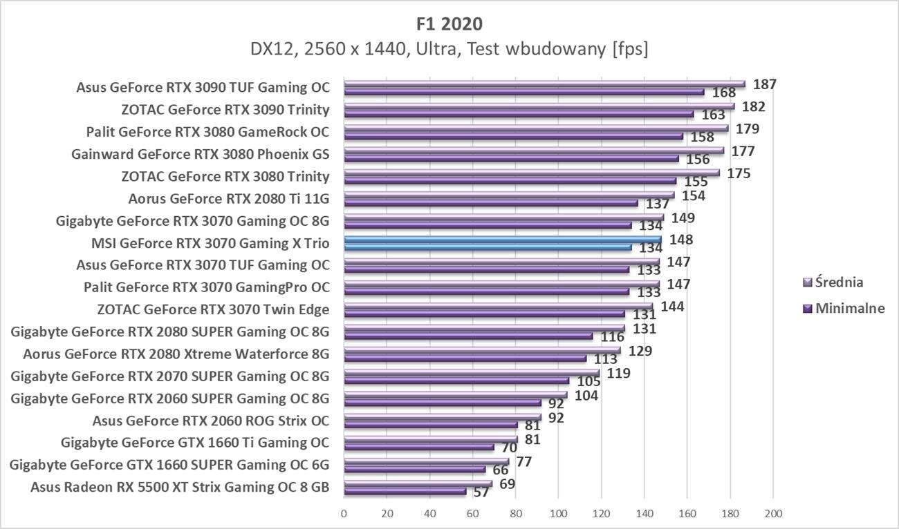 Testy MSI GeForce RTX 3070 Gaming X Trio w rozdzielczości 2560 x 1440